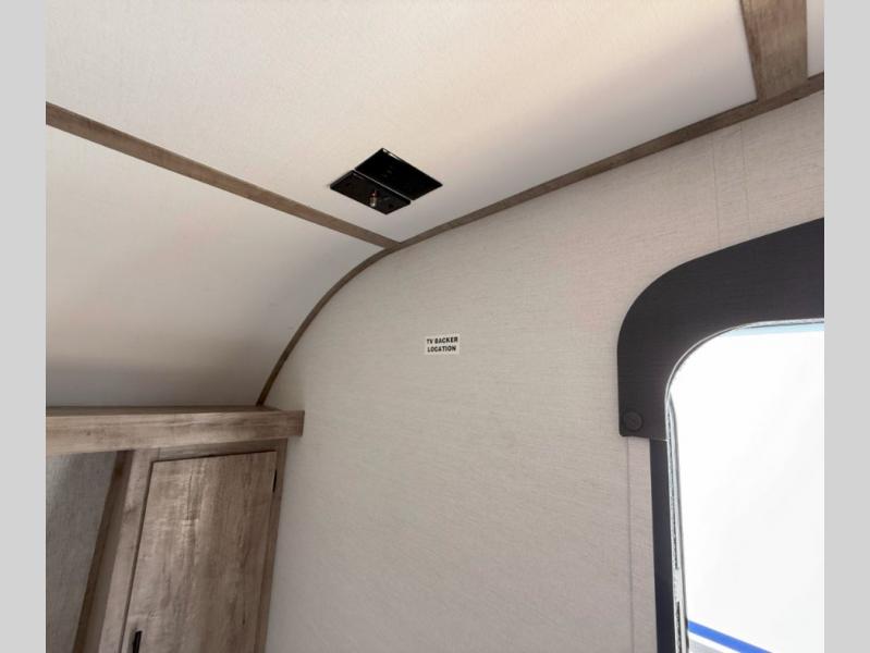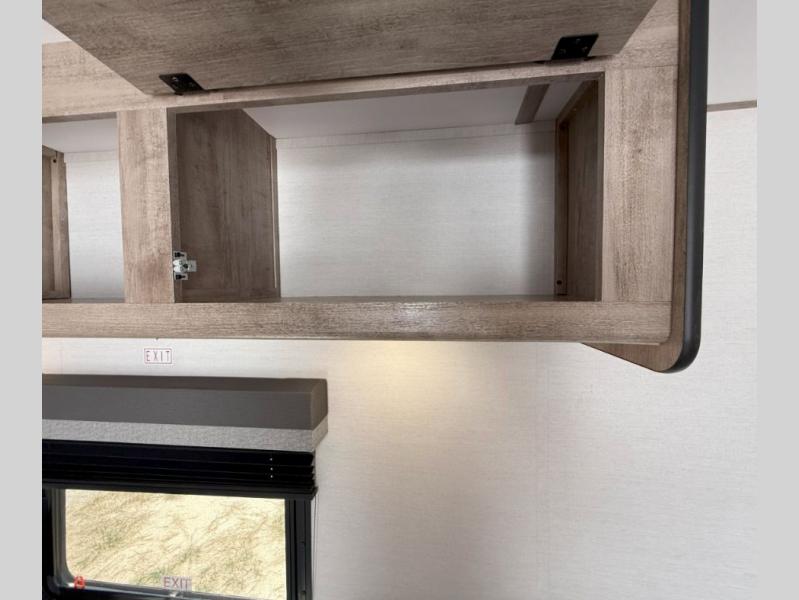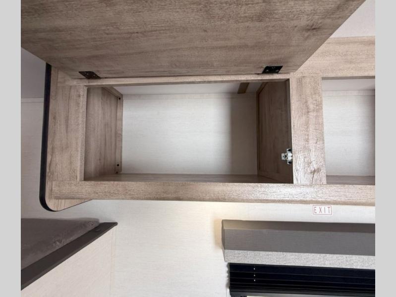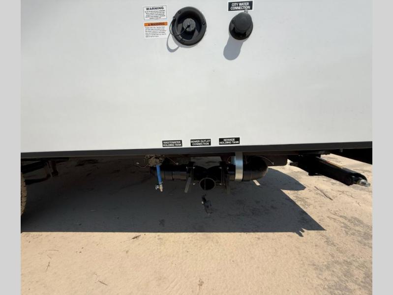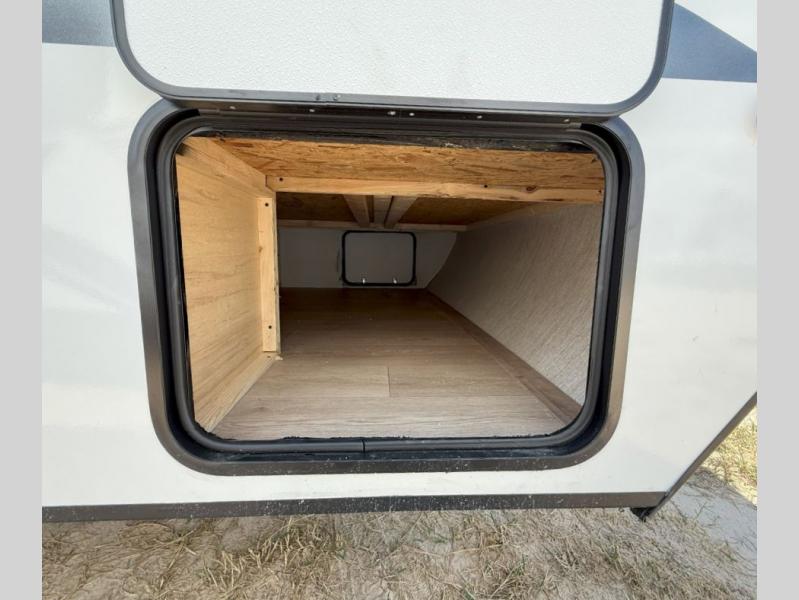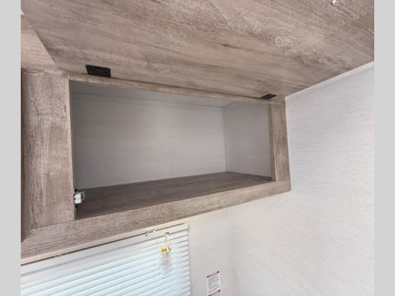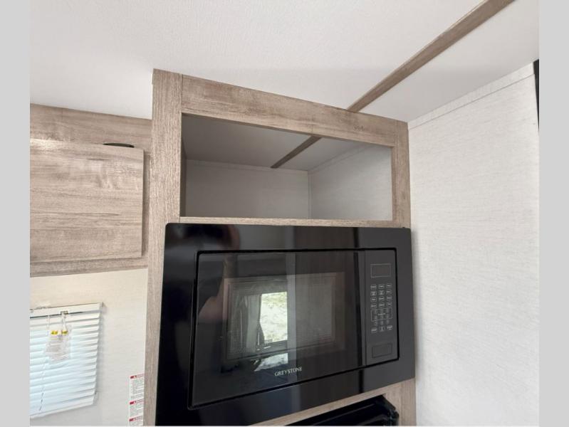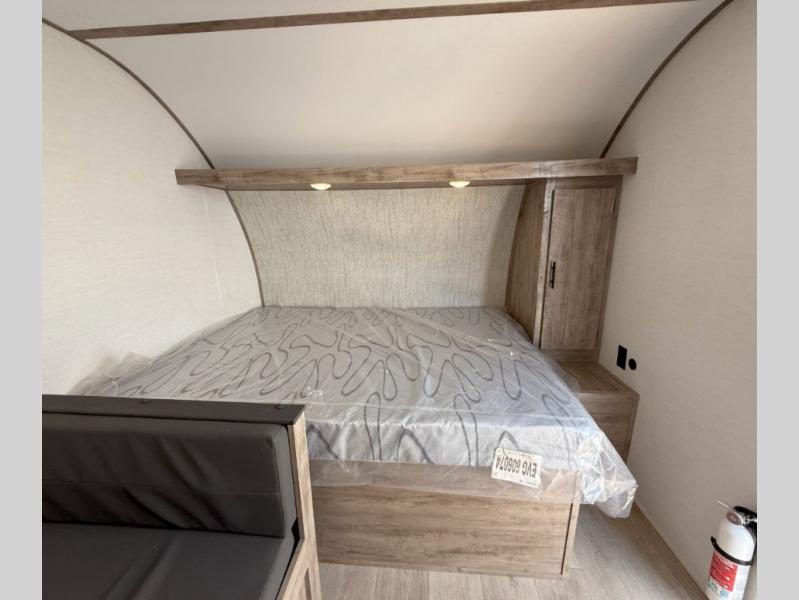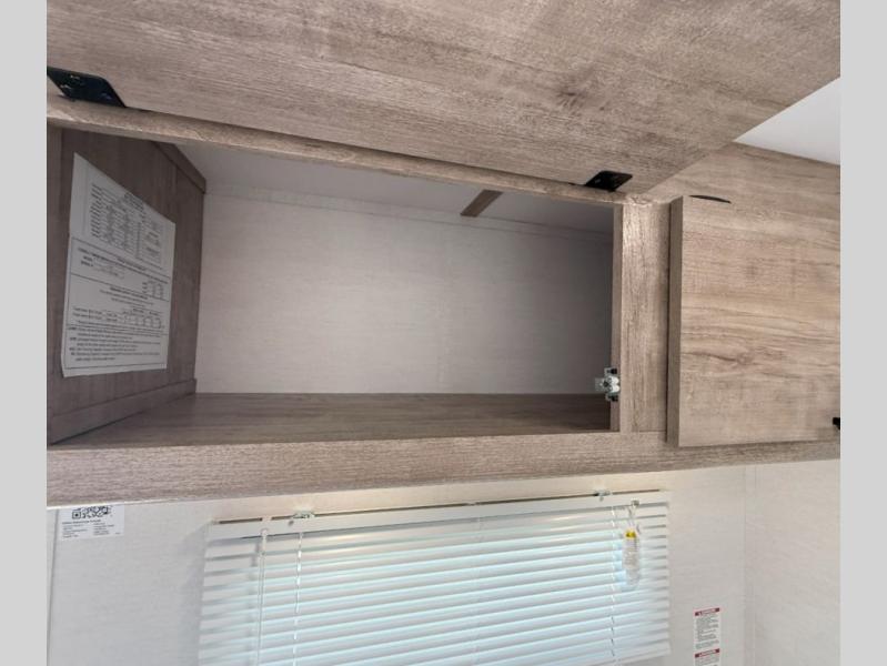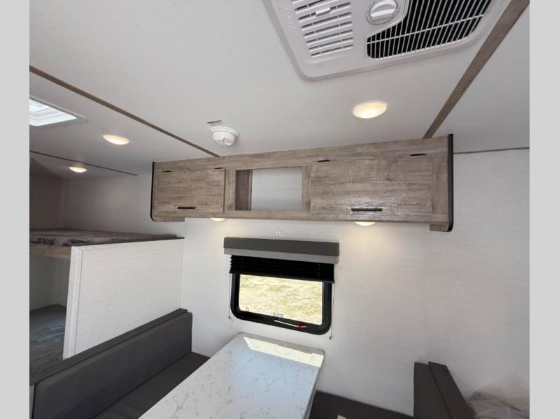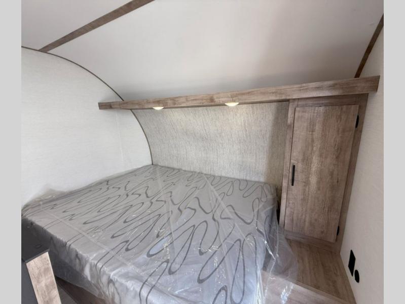 Your family or group of five will feel right at home in this cozy travel trailer. There is a front corner bed with a night stand for your things, bunk beds for the little ones, plus a booth dinette that can double as dining and sleeping space. The private toilet and shower will allow you to stay clean throughout your trip, and since the sink is in the kitchen, one camper can shower, while the other brushes their teeth. You'll find everything you need to prepare meals each day, including a two burner cooktop, a microwave oven, plus a refrigerator for perishables. This model also includes a fireplace to take the chill out and create a more home-like feel!