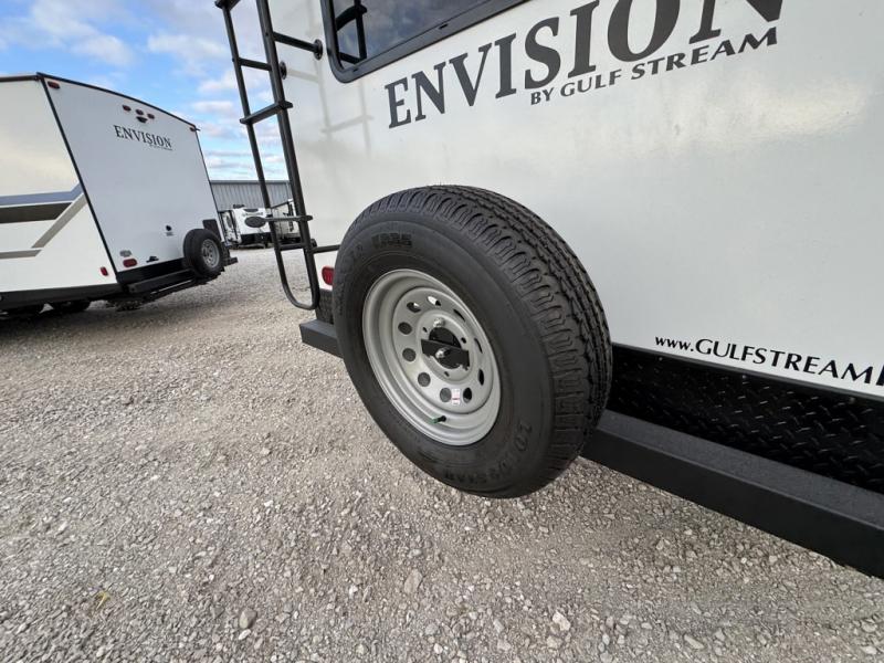 Each Envision Luxury Series travel trailer by Gulf Stream is constructed with fiberglass exterior sidewalls with Azdel, a fiberglass front cap with LED lights, and a one-piece rubber roof for durability that lasts. The central command switch panel with a monitor panel lets you control your trailers functions in one easy location, and the tech-ready features will let you add solar, Wi-Fi, or back-up camera if you choose. Solid wood cabinetry, designer window treatments, and stainless steel appliances will make these models feel more like home, plus there's tons of storage space for your belongings. Some of the exterior features that will blow you away are the marine-grade exterior LED speakers, the power awning with LED lights, and the exterior docking station for your utility hookups.