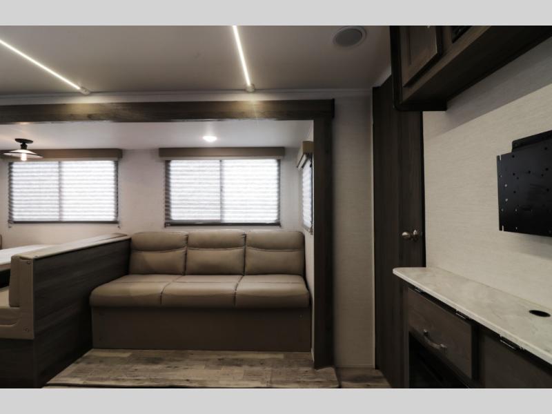 The Envision Signature Series is engineered with durable laminated fiberglass sidewalls with Azdel backing, a fiberglass front cap, and a one-piece roof for long-term protection and strength. A centralized command panel lets you monitor and control key RV systems easily, giving both new and experienced RV owners a simple, user-friendly experience.