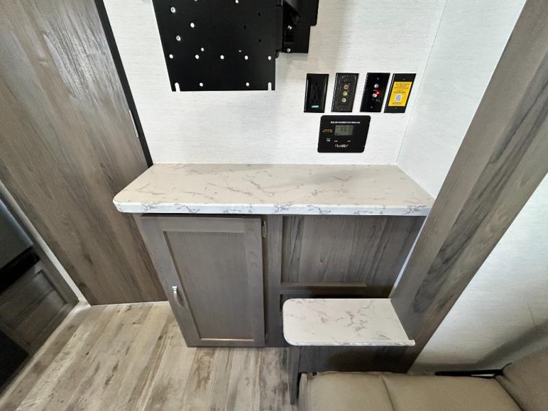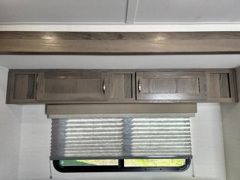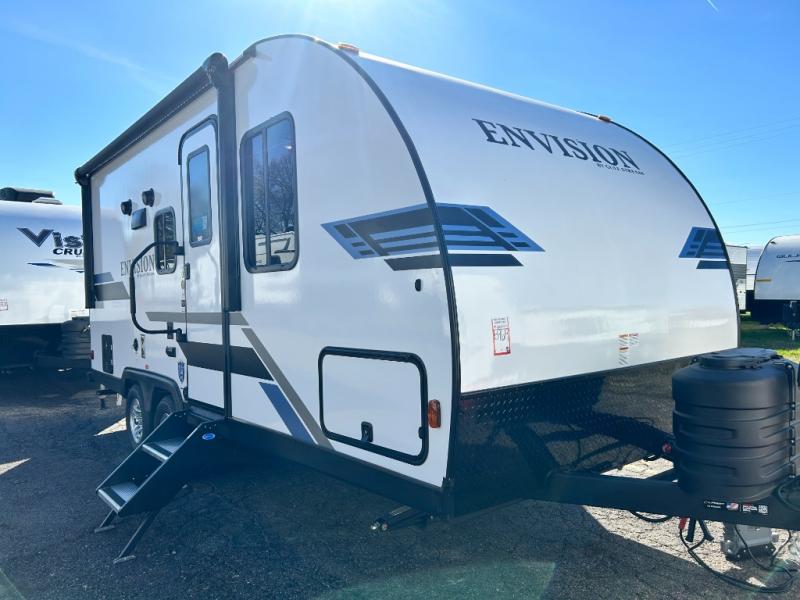 The Envision SVT travel trailers by Gulf Stream have got you covered when it comes to convenience, affordability, and comfort! Each model includes four manual stabilizer jacks, a friction hinge entry door, and deluxe slam-latch luggage doors so you can pack everything up quickly and easily. The fiberglass exterior sidewalls and one-piece vinyl roof create a lightweight trailer for easy towing, and each model comes standard with many safety features for your peace of mind. The included and required SVT Package features night shades, a power tongue jack, a tankless water heater, and an electric awning with LED lights and speakers to name a few stand-out features!