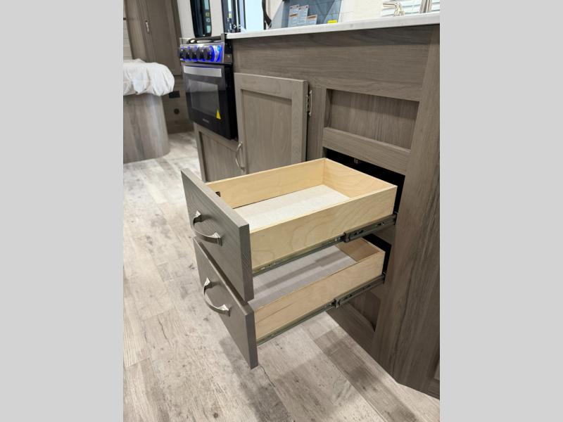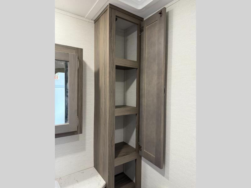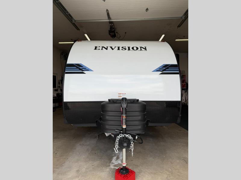 The Envision SVT travel trailers by Gulf Stream have got you covered when it comes to convenience, affordability, and comfort! Each model includes four manual stabilizer jacks, a friction hinge entry door, and deluxe slam-latch luggage doors so you can pack everything up quickly and easily. The fiberglass exterior sidewalls and one-piece vinyl roof create a lightweight trailer for easy towing, and each model comes standard with many safety features for your peace of mind. The included and required SVT Package features night shades, a power tongue jack, a tankless water heater, and an electric awning with LED lights and speakers to name a few stand-out features!