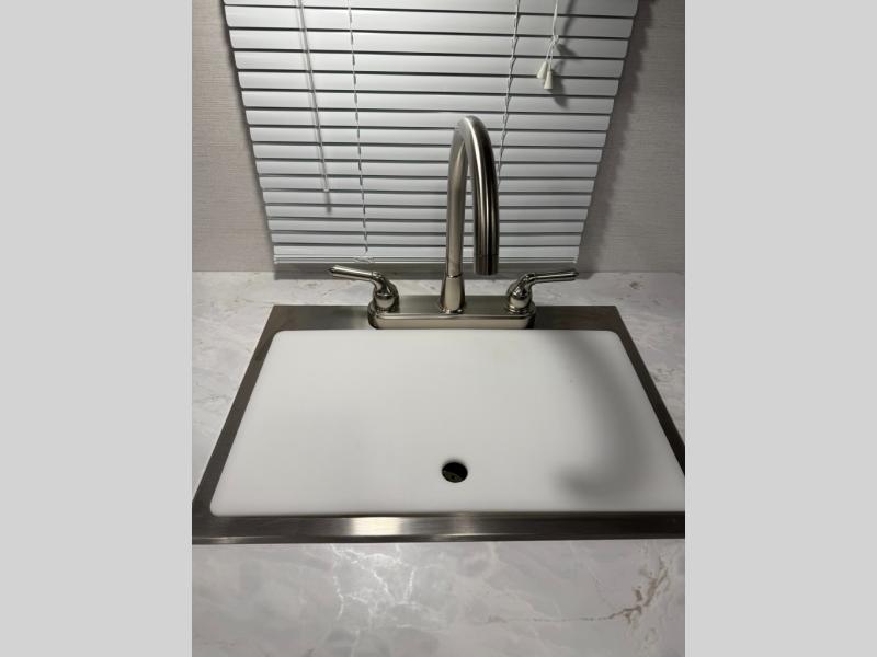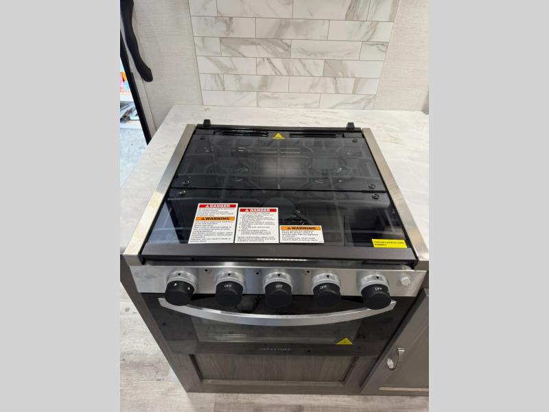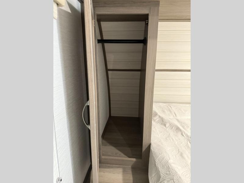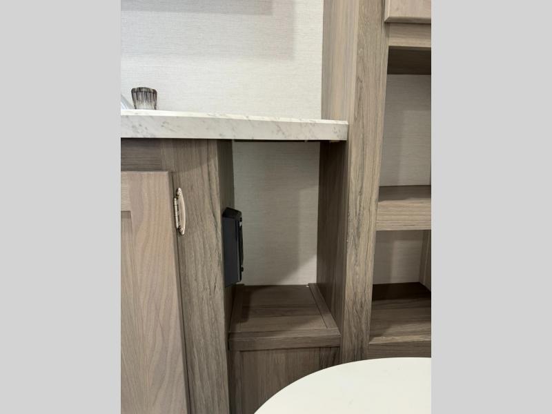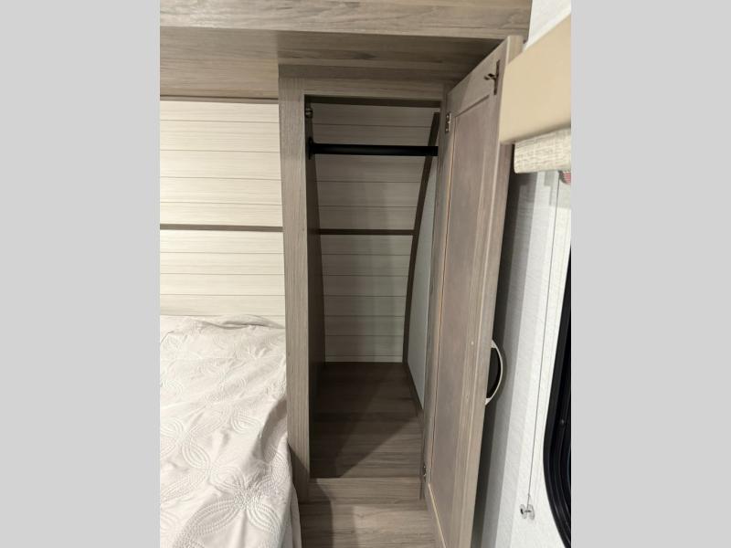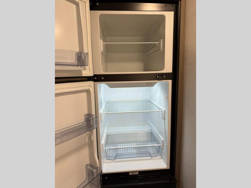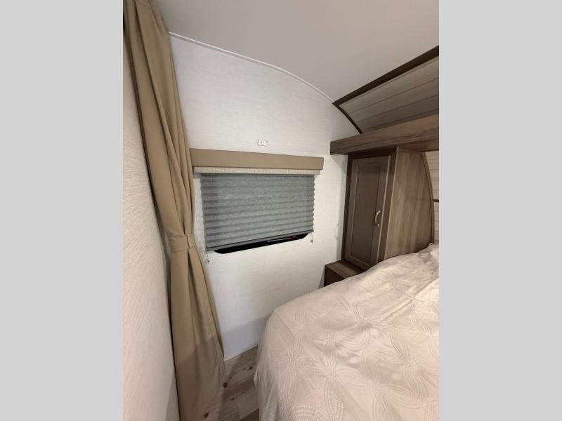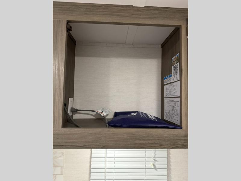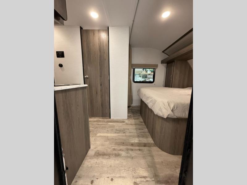 Escape the hustle and bustle of big city life and enjoy your weekends away in this comfortable travel trailer. You will feel right at home with an RV queen bed up front with dual shirt closet for your clothes. The full bath allows you to clean up each day, and the U-shaped dinette will be perfect for dining or additional sleeping space. In the kitchen you'll find a cooktop, a microwave oven, plus an 8 cu. ft.12V refrigerator for perishables. There is even a pantry for all the snacks or canned goods. After dinner, head outside to sit under the electric awning with LED lights before calling it a night!