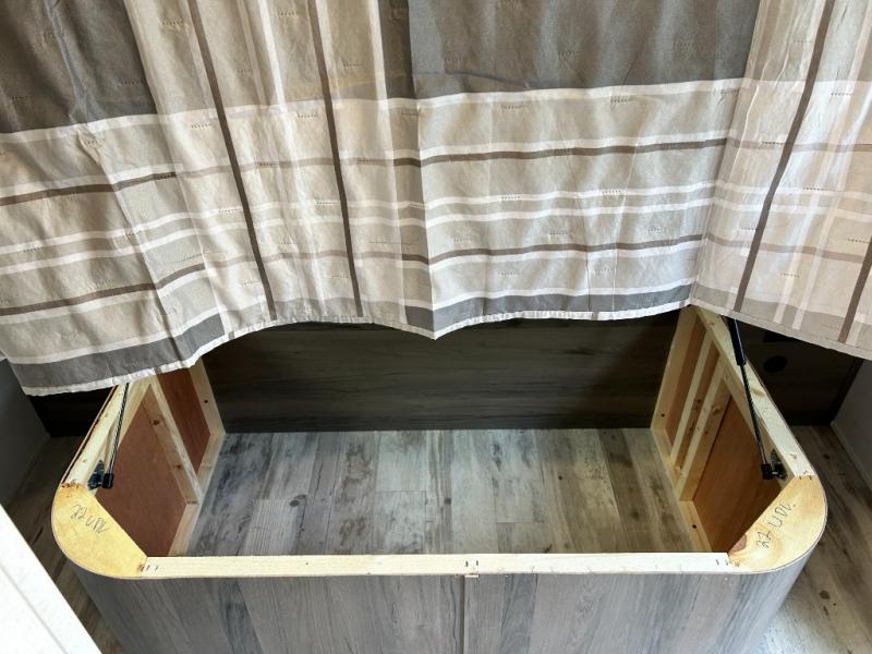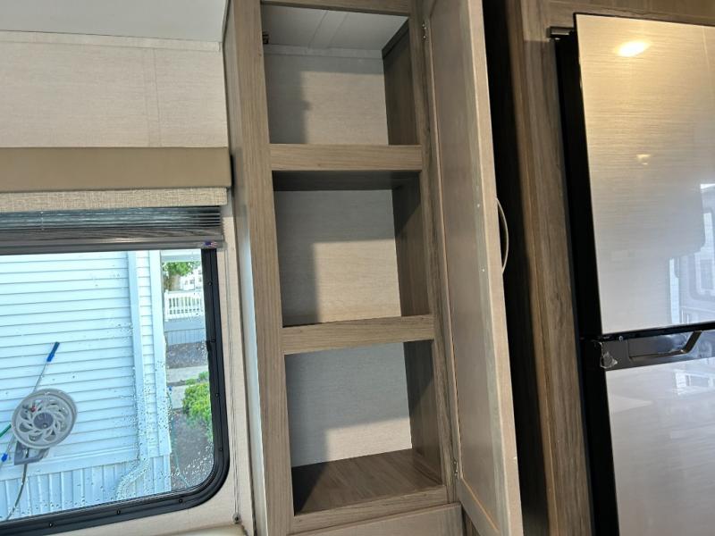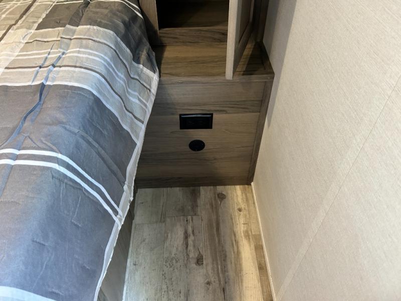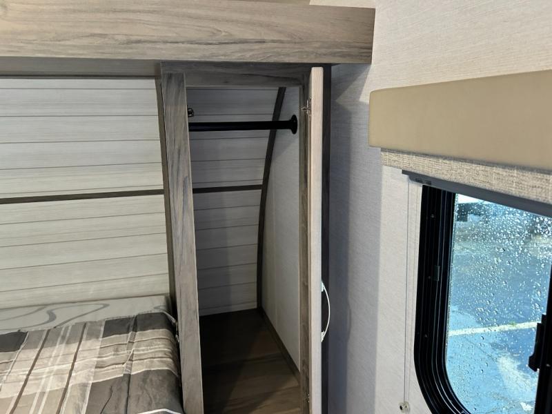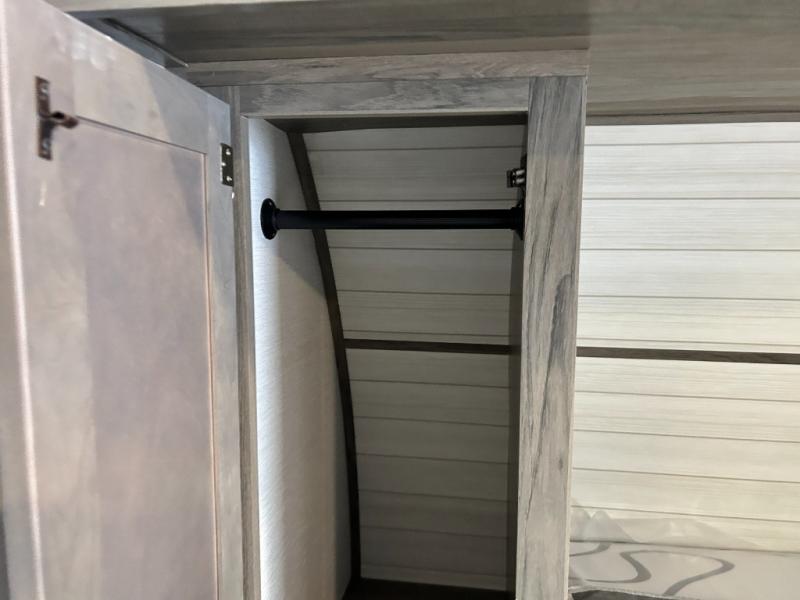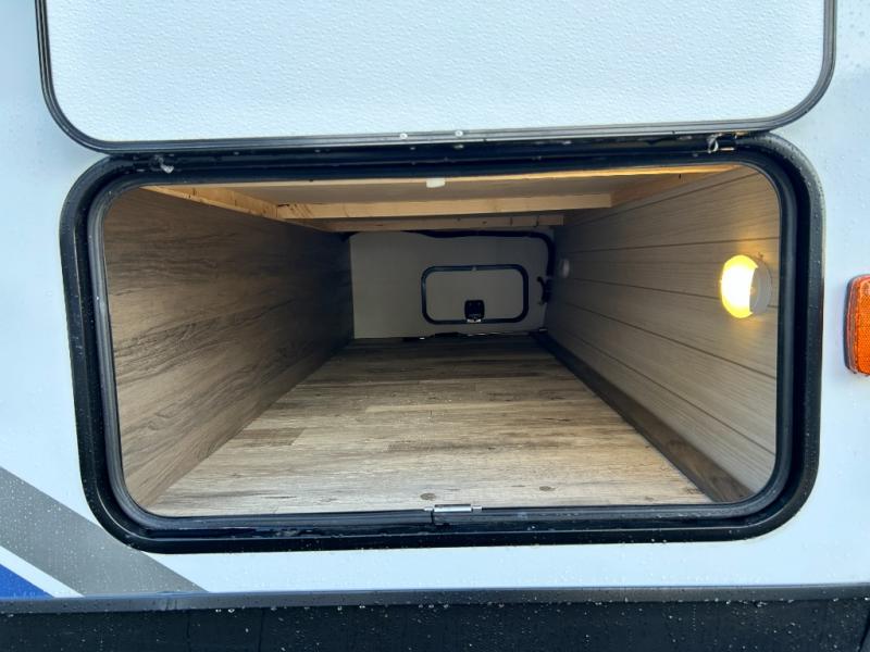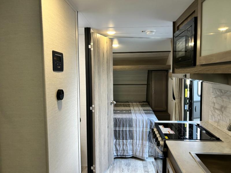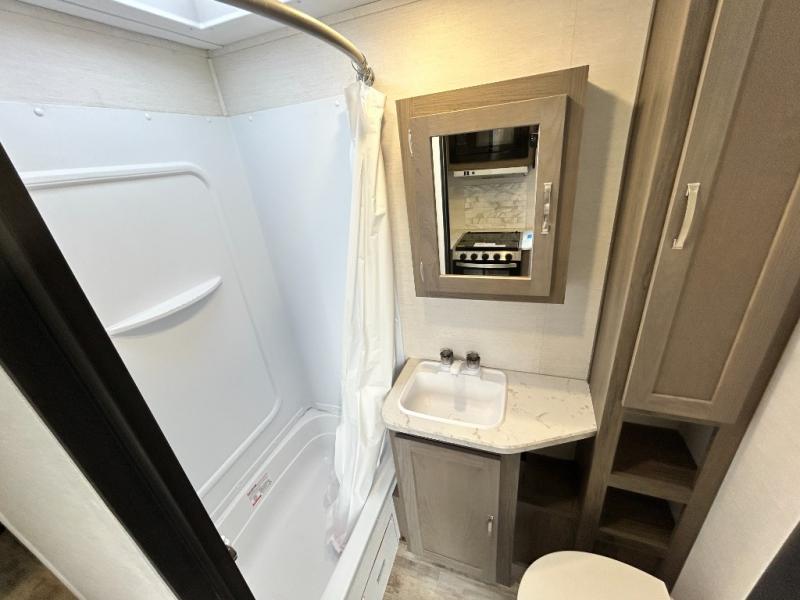 Escape the hustle and bustle of big city life and enjoy your weekends away in this comfortable travel trailer. You will feel right at home with an RV queen bed up front with dual shirt closet for your clothes. The full bath allows you to clean up each day, and the U-shaped dinette will be perfect for dining or additional sleeping space. In the kitchen you'll find a cooktop, a microwave oven, plus an 8 cu. ft.12V refrigerator for perishables. There is even a pantry for all the snacks or canned goods. After dinner, head outside to sit under the electric awning with LED lights before calling it a night!