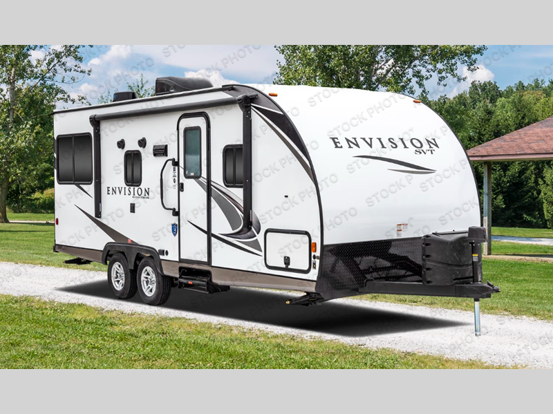 The Envision SVT travel trailers by Gulf Stream have got you covered when it comes to convenience, affordability, and comfort! Each model includes four manual stabilizer jacks, a friction hinge entry door, and deluxe slam-latch luggage doors so you can pack everything up quickly and easily. The fiberglass exterior sidewalls and one-piece vinyl roof create a lightweight trailer for easy towing, and each model comes standard with many safety features for your peace of mind. The included and required SVT Package features night shades, a power tongue jack, a tankless water heater, and an electric awning with LED lights and speakers to name a few stand-out features!
