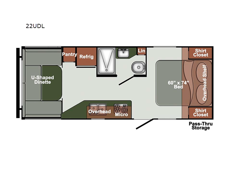 Escape the hustle and bustle of big city life and enjoy your weekends away in this comfortable travel trailer. You will feel right at home with an RV queen bed up front with dual shirt closet for your clothes. The full bath allows you to clean up each day, and the U-shaped dinette will be perfect for dining or additional sleeping space. In the kitchen you'll find a cooktop, a microwave oven, plus an 8 cu. ft.12V refrigerator for perishables. There is even a pantry for all the snacks or canned goods. After dinner, head outside to sit under the electric awning with LED lights before calling it a night!