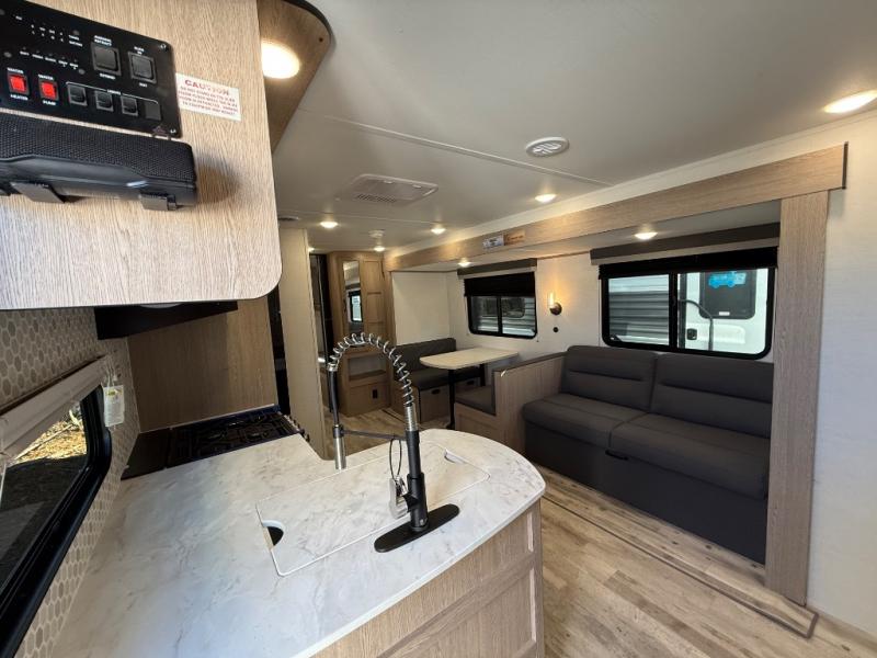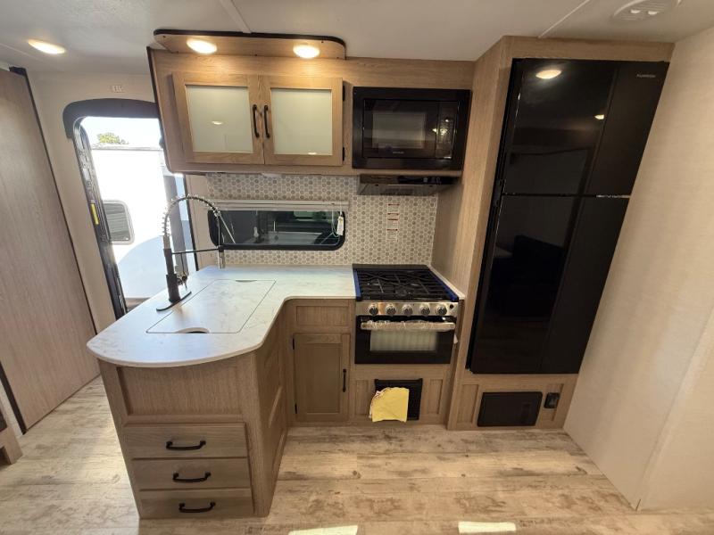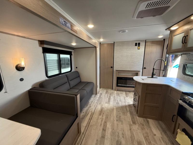 With any Kingsport Ultra Lite by Gulf Stream, you can enjoy a lightweight travel trailer on a budget with plenty of standard features to enjoy, and the required Lite Value Package offers convenience, comfort and Tech-Ready upgrades such as Wi-Fi and satellite TV ready connections, solar panel prep, back-up camera hookups, and multiple USB ports to keep the electronics charged. Each is constructed with a one-piece synthetic vinyl roof, fiberglass insulation hand-cut and glued in place, Butyl caulk for better seal and fewer streaks, and full-width steel outriggers for superior strength and support. Inside is easy to care for with vinyl wallcovering and high-performance vinyl flooring throughout, plus you will enjoy the upgraded furniture package, the designer backsplash in the kitchen, and the craft-made cabinetry with designer drawer and door pulls. Make your selection now!