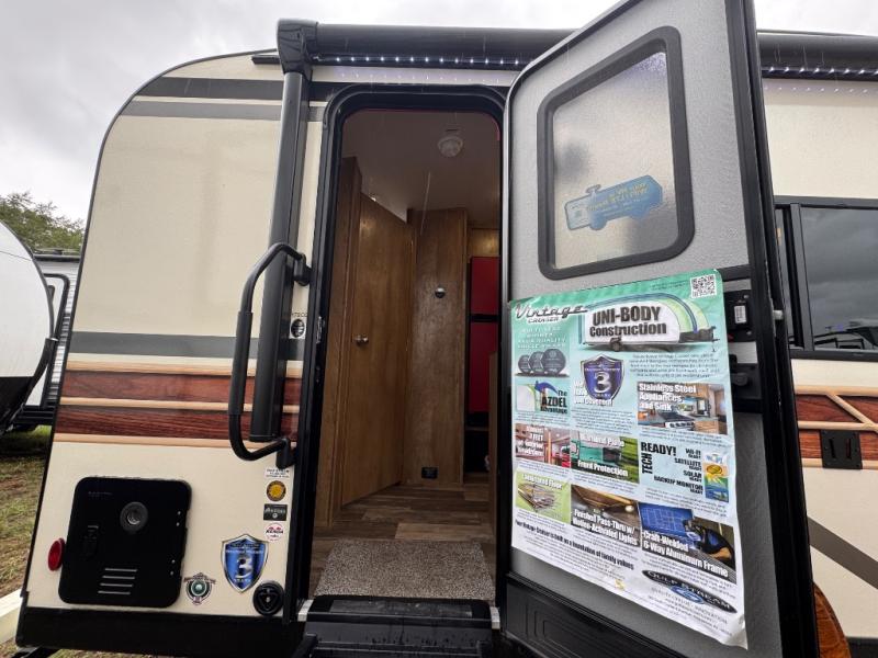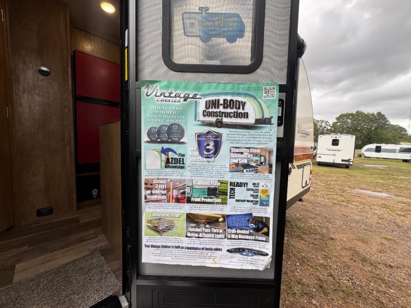 With any Vintage Cruiser by Gulf Stream you will be taken back to the fun of the 50's with vintage exterior graphics and classic interiors. Each model is constructed with a six-sided welded aluminum frame, vacuum bonded sidewalls with Azdel, and a vintage painted bumper you are sure to love. The Vintage Cruiser travel trailers include high-performance vinyl flooring, LED interior ceiling lights, a seamless tub/shower surround, and vintage flat cabinet doors to name a few comforts you'll find throughout. Some of the stand-out features found within the Vintage Package include a tankless water heater, a 100W roof-mounted solar panel with a controller, Goodyear Endurance tires, and more!