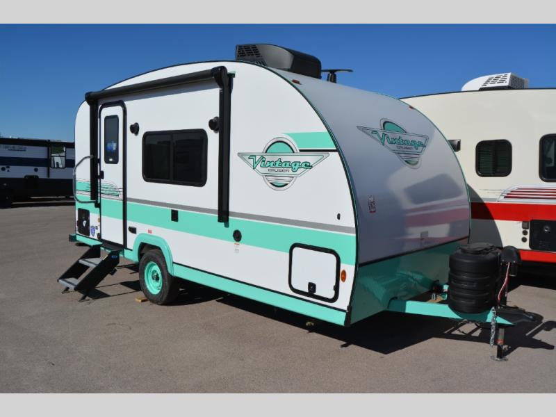 With any Vintage Cruiser by Gulf Stream you will be taken back to the fun of the 50's with vintage exterior graphics and classic interiors. Each model is constructed with a six-sided welded aluminum frame, vacuum bonded sidewalls with Azdel, and a vintage painted bumper you are sure to love. The Vintage Cruiser travel trailers include high-performance vinyl flooring, LED interior ceiling lights, a seamless tub/shower surround, and vintage flat cabinet doors to name a few comforts you'll find throughout. Some of the stand-out features found within the Vintage Package include a tankless water heater, a 100W roof-mounted solar panel with a controller, Goodyear Endurance tires, and more!