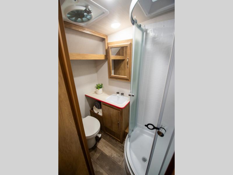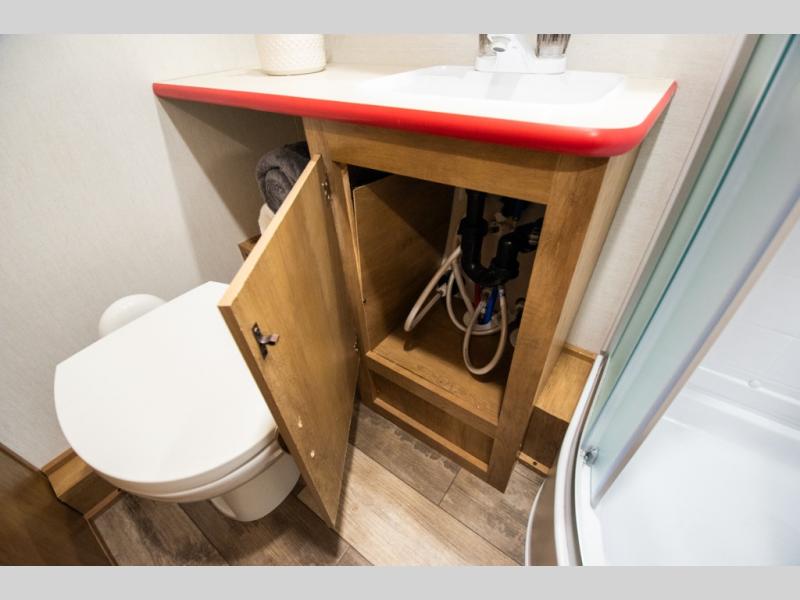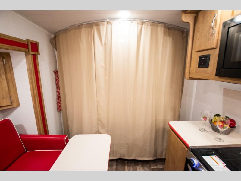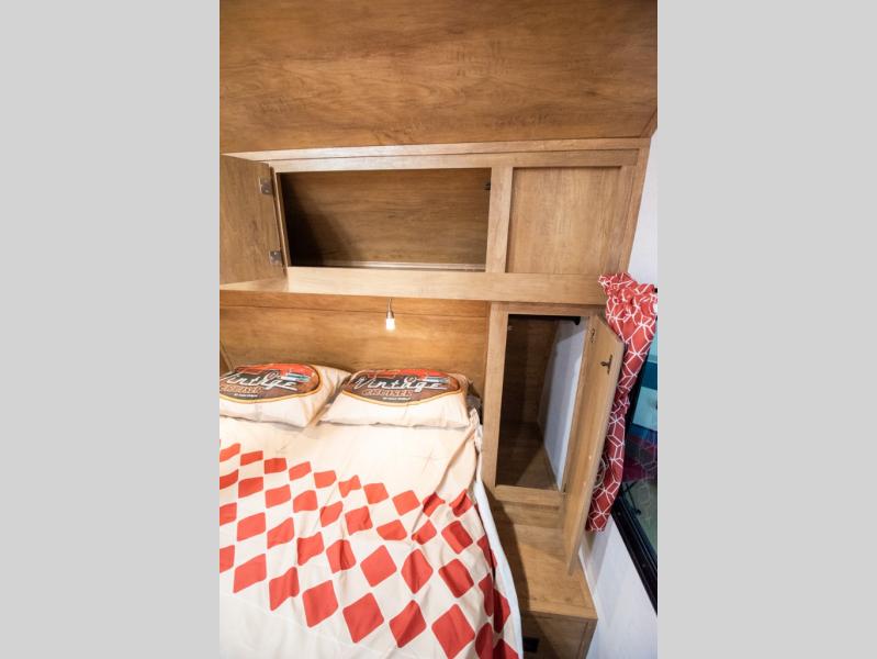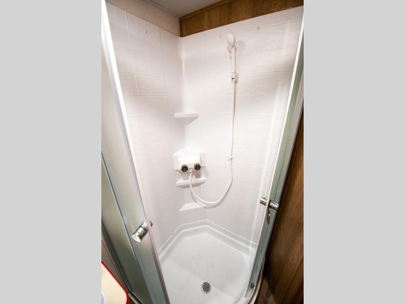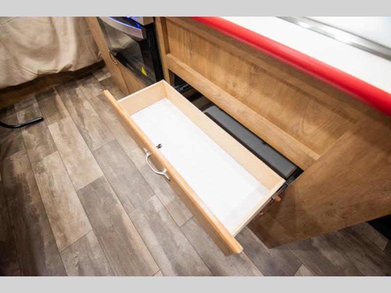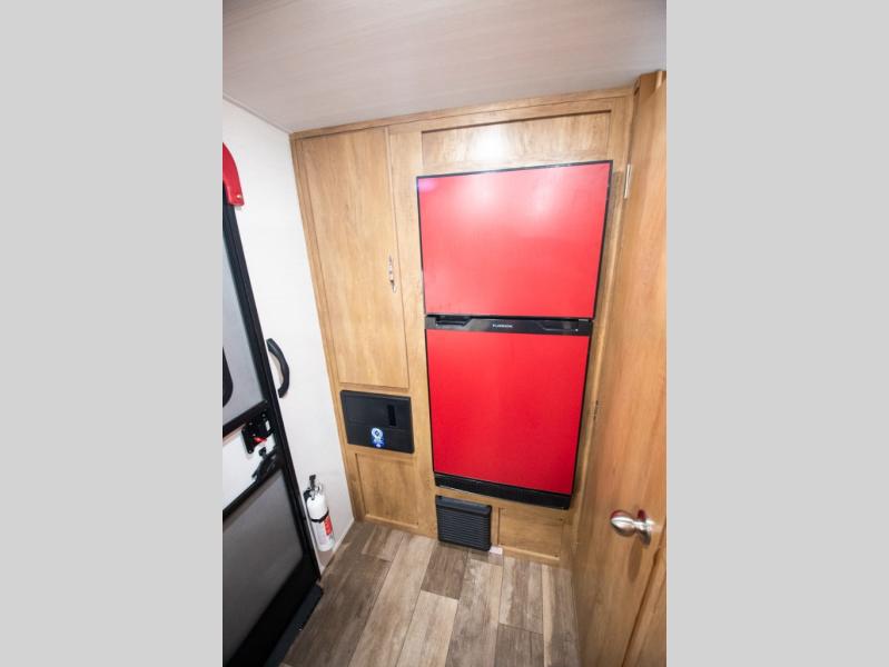 You'll enjoy every minute spent in this roomy travel trailer for four. The sofa bed slide with a table in front of it will provide more space, plus an area to relax, eat, and sleep a guest or two. A front RV queen bed will make this model feel more like home, especially with dual shirt closets on either side of the bed for your clothes. Whip up your best meals on the cooktop, or use the microwave oven if you're on the go. This model also includes an 8 cu. ft. 12V refrigerator and a pantry/closet for plenty of storage space!