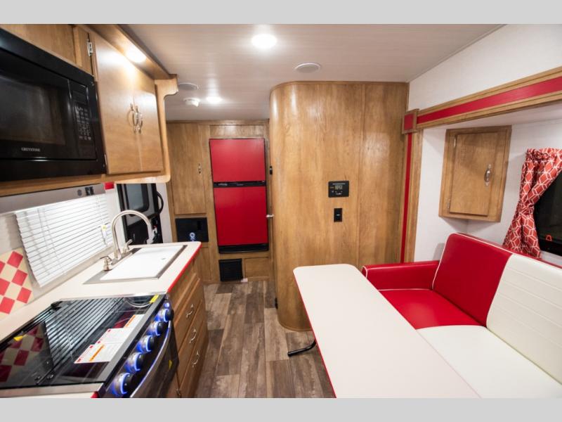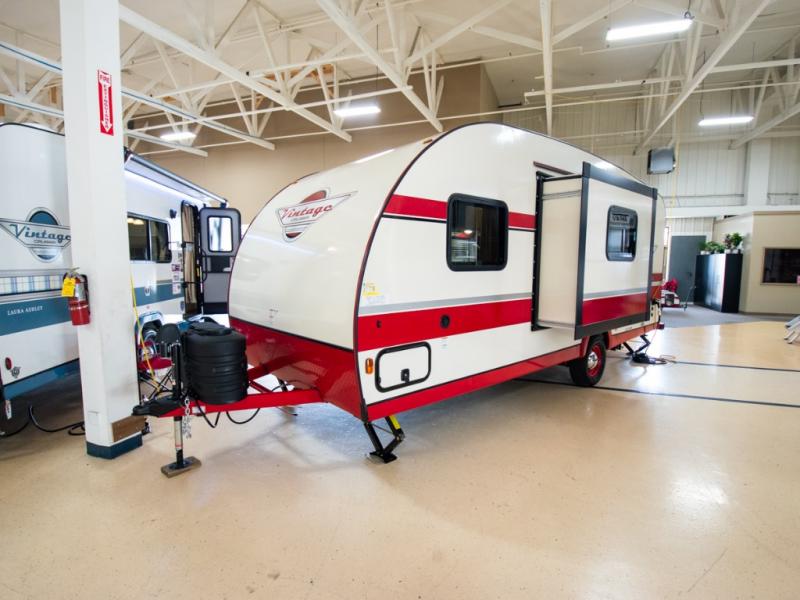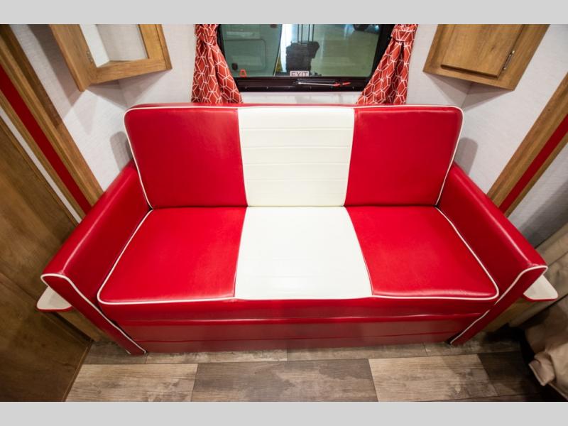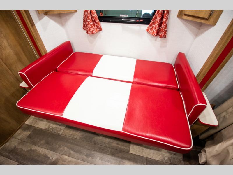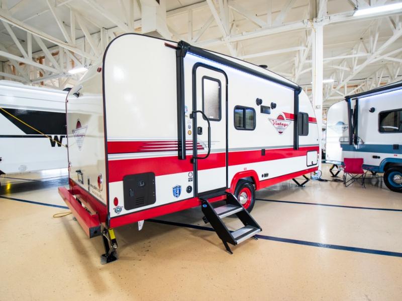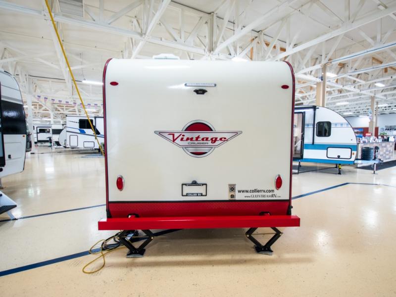 With any Vintage Cruiser by Gulf Stream you will be taken back to the fun of the 50's with vintage exterior graphics and classic interiors. Each model is constructed with a six-sided welded aluminum frame, vacuum bonded sidewalls with Azdel, and a vintage painted bumper you are sure to love. The Vintage Cruiser travel trailers include high-performance vinyl flooring, LED interior ceiling lights, a seamless tub/shower surround, and vintage flat cabinet doors to name a few comforts you'll find throughout. Some of the stand-out features found within the Vintage Package include a tankless water heater, a 100W roof-mounted solar panel with a controller, Goodyear Endurance tires, and more!