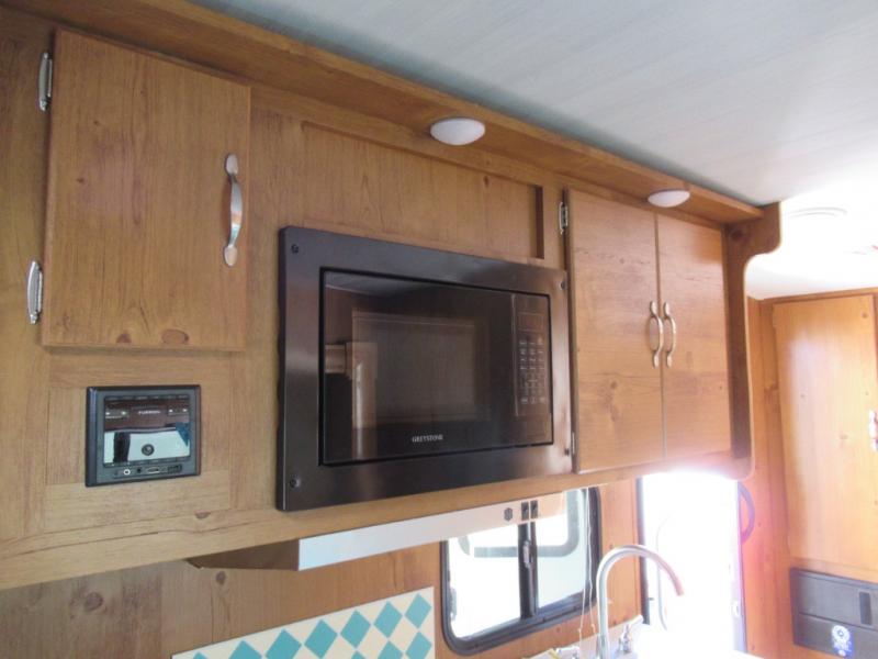 You'll enjoy every minute spent in this roomy travel trailer for four. The sofa bed slide with a table in front of it will provide more space, plus an area to relax, eat, and sleep a guest or two. A front RV queen bed will make this model feel more like home, especially with dual shirt closets on either side of the bed for your clothes. Whip up your best meals on the cooktop, or use the microwave oven if you're on the go. This model also includes an 8 cu. ft. 12V refrigerator and a pantry/closet for plenty of storage space!