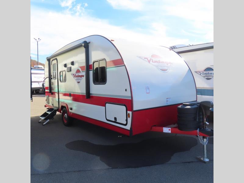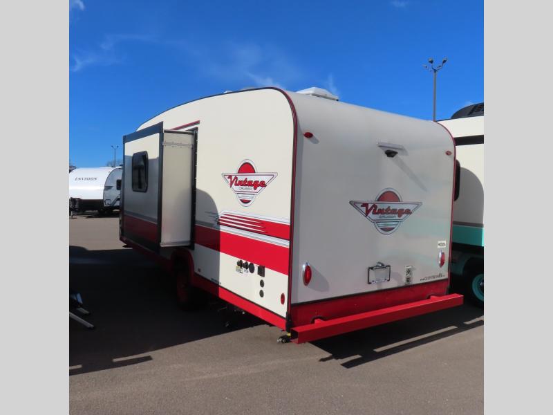 With any Vintage Cruiser by Gulf Stream you will be taken back to the fun of the 50's with vintage exterior graphics and classic interiors. Each model is constructed with a six-sided welded aluminum frame, vacuum bonded sidewalls with Azdel, and a vintage painted bumper you are sure to love. The Vintage Cruiser travel trailers include high-performance vinyl flooring, LED interior ceiling lights, a seamless tub/shower surround, and vintage flat cabinet doors to name a few comforts you'll find throughout. Some of the stand-out features found within the Vintage Package include a tankless water heater, a 100W roof-mounted solar panel with a controller, Goodyear Endurance tires, and more!