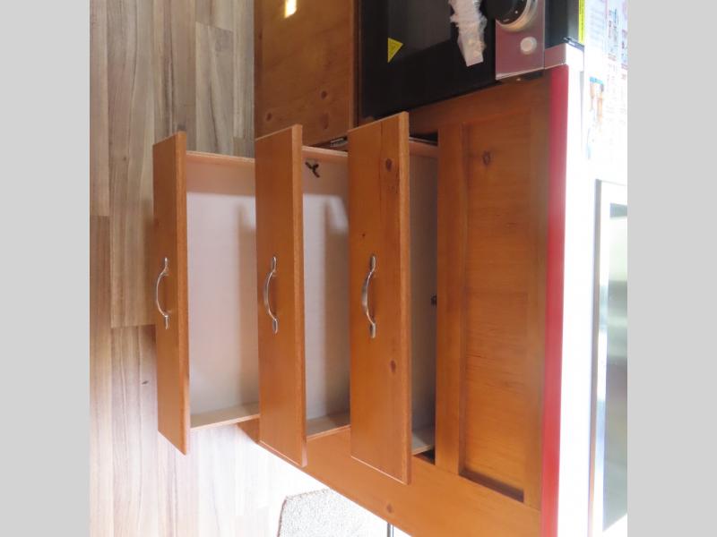 You'll enjoy every minute spent in this roomy travel trailer for four. The sofa bed slide with a table in front of it will provide more space, plus an area to relax, eat, and sleep a guest or two. A front RV queen bed will make this model feel more like home, especially with dual shirt closets on either side of the bed for your clothes. Whip up your best meals on the cooktop, or use the microwave oven if you're on the go. This model also includes an 8 cu. ft. 12V refrigerator and a pantry/closet for plenty of storage space!