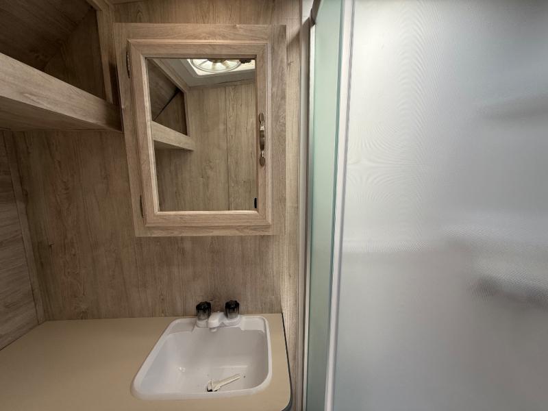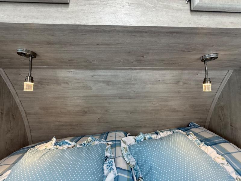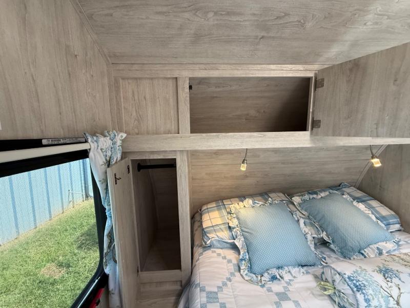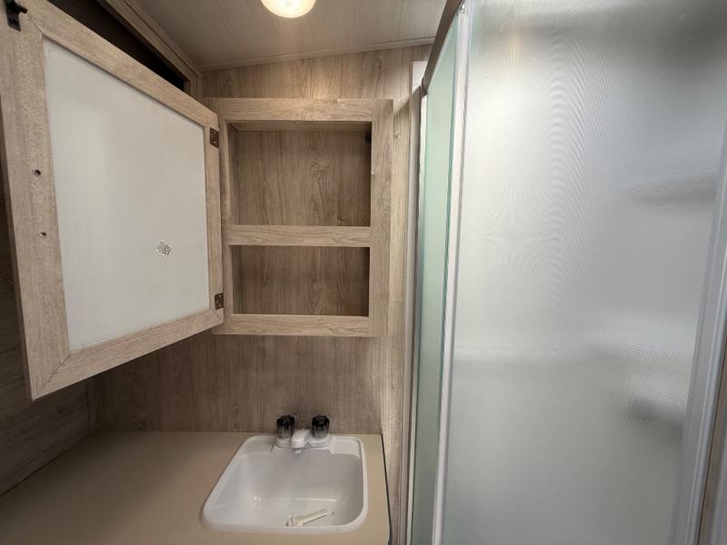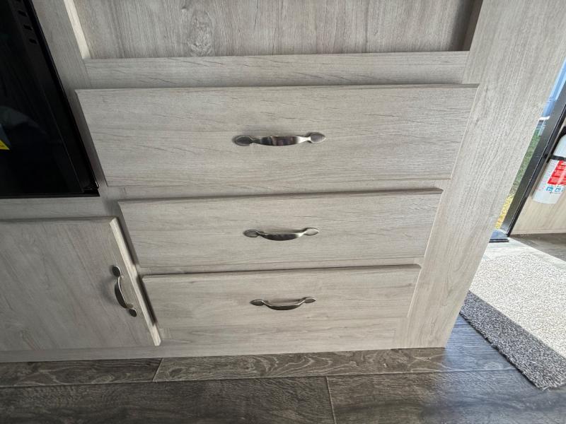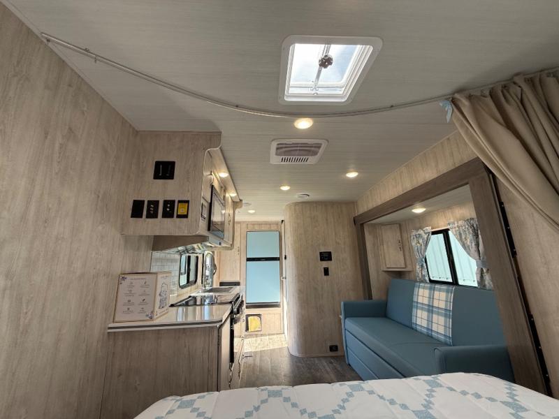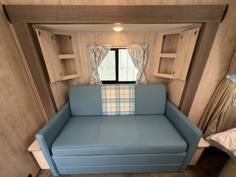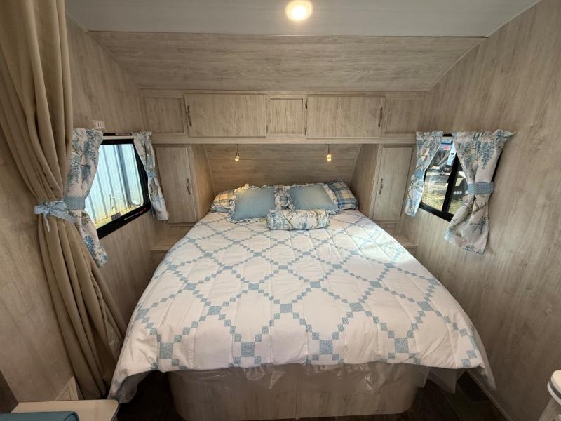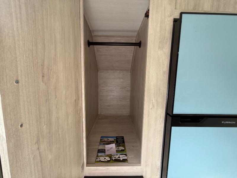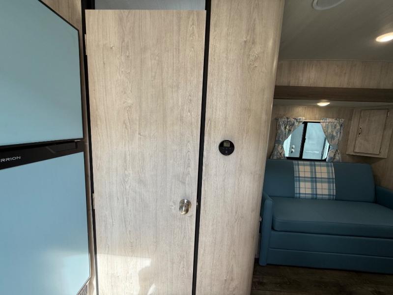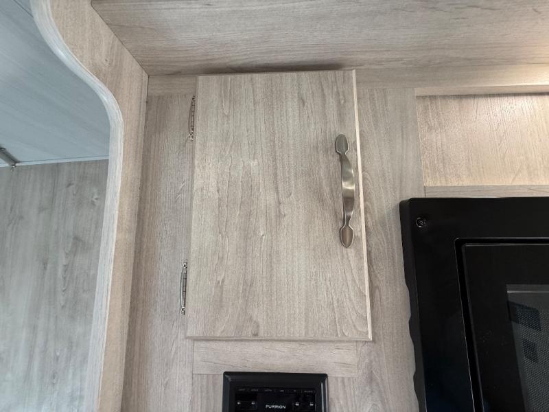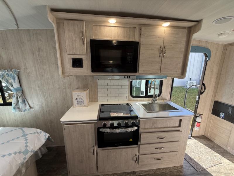 You'll enjoy every minute spent in this roomy travel trailer for four. The sofa bed slide with a table in front of it will provide more space, plus an area to relax, eat, and sleep a guest or two. A front RV queen bed will make this model feel more like home, especially with dual shirt closets on either side of the bed for your clothes. Whip up your best meals on the cooktop, or use the microwave oven if you're on the go. This model also includes an 8 cu. ft. 12V refrigerator and a pantry/closet for plenty of storage space!