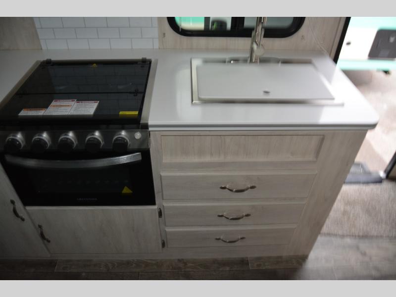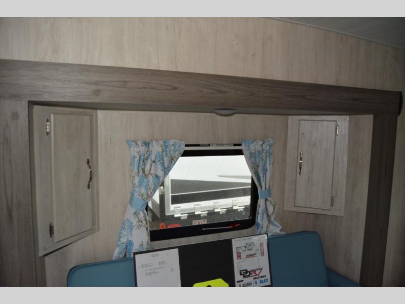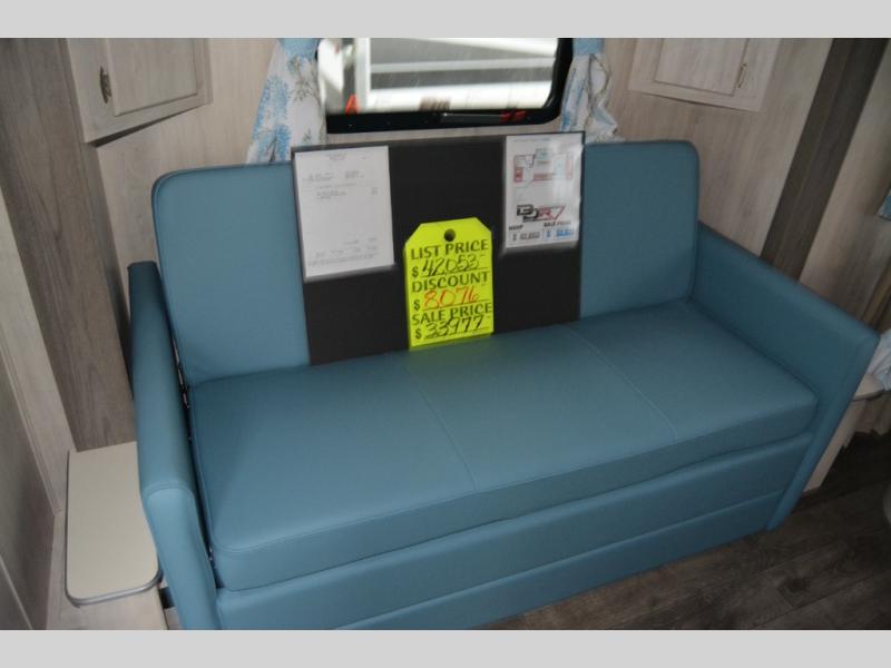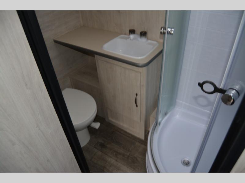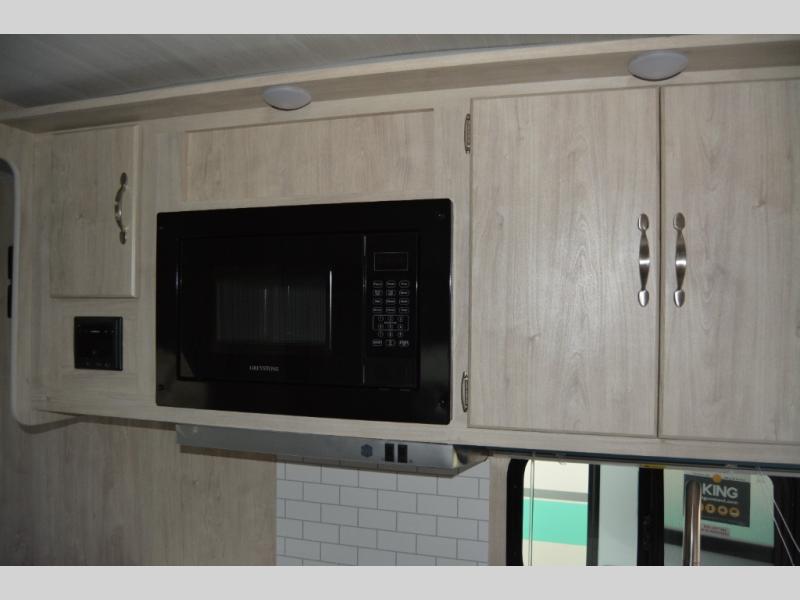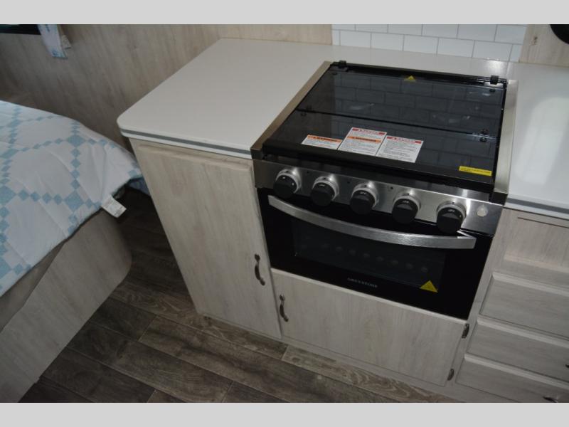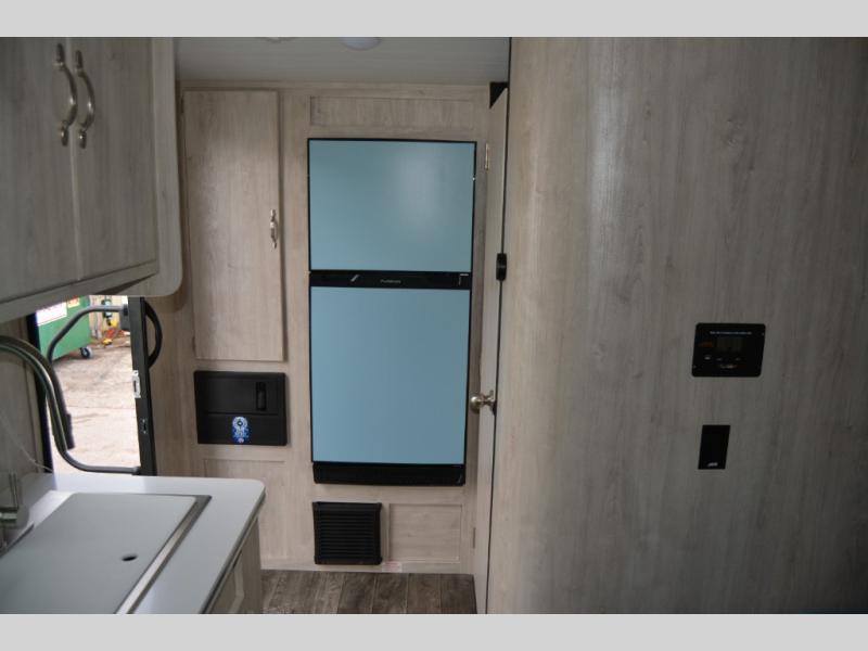 You'll enjoy every minute spent in this roomy travel trailer for four. The sofa bed slide with a table in front of it will provide more space, plus an area to relax, eat, and sleep a guest or two. A front RV queen bed will make this model feel more like home, especially with dual shirt closets on either side of the bed for your clothes. Whip up your best meals on the cooktop, or use the microwave oven if you're on the go. This model also includes an 8 cu. ft. 12V refrigerator and a pantry/closet for plenty of storage space!