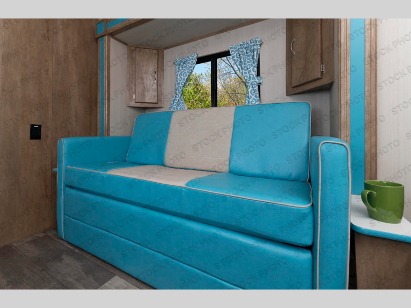 You'll enjoy every minute spent in this roomy travel trailer for four. The sofa bed slide with a table in front of it will provide more space, plus an area to relax, eat, and sleep a guest or two. A front RV queen bed will make this model feel more like home, especially with dual shirt closets on either side of the bed for your clothes. Whip up your best meals on the cooktop, or use the microwave oven if you're on the go. This model also includes an 8 cu. ft. 12V refrigerator and a pantry/closet for plenty of storage space!