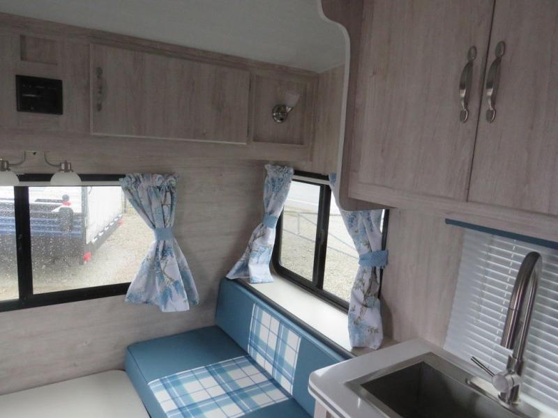 If you enjoy a more classic look for an RV, you'll love this Vintage Cruiser 19ERD. The rear booth dinette is surrounded by windows for bright, open views, and you'll find overhead storage here for dry goods or snacks. The chef of your group will have a cooktop and a microwave oven to prepare meals. The private toilet and sink is right across the hall from the 24" x 36" shower so two people can freshen up at once. How convenient! This model also features a semi-private front bedroom with a privacy curtain for your own space, plus an RV queen bed and dual shirt closets to keep your clothes tidy!