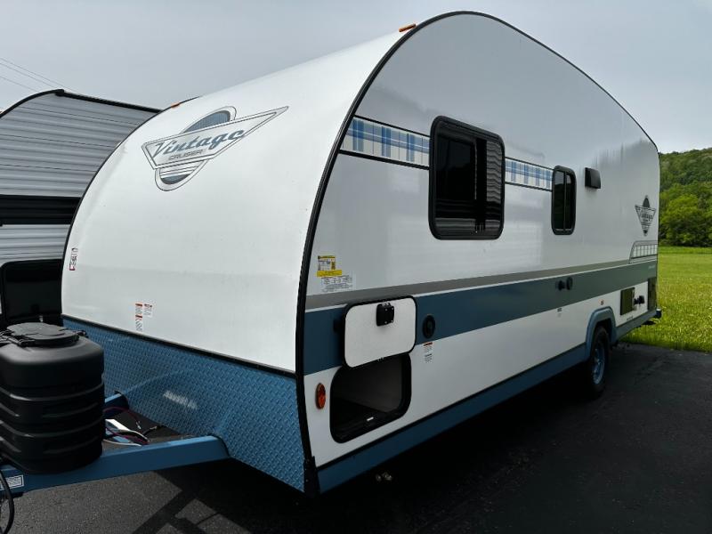 With any Vintage Cruiser by Gulf Stream you will be taken back to the fun of the 50's with vintage exterior graphics and classic interiors. Each model is constructed with a six-sided welded aluminum frame, vacuum bonded sidewalls with Azdel, and a vintage painted bumper you are sure to love. The Vintage Cruiser travel trailers include high-performance vinyl flooring, LED interior ceiling lights, a seamless tub/shower surround, and vintage flat cabinet doors to name a few comforts you'll find throughout. Some of the stand-out features found within the Vintage Package include a tankless water heater, a 100W roof-mounted solar panel with a controller, Goodyear Endurance tires, and more!