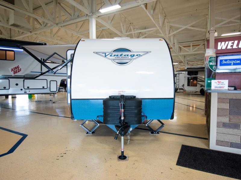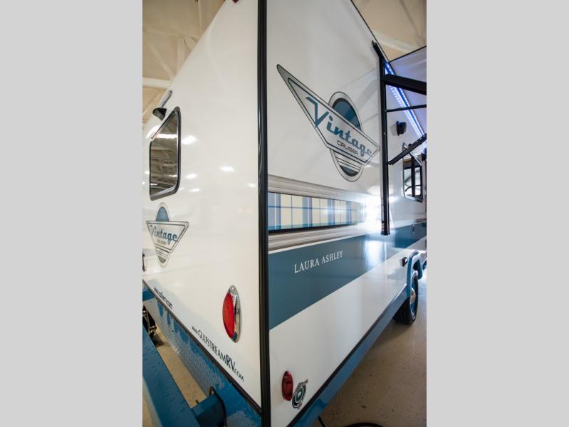With any Vintage Cruiser by Gulf Stream you will be taken back to the fun of the 50's with vintage exterior graphics and classic interiors. Each model is constructed with a six-sided welded aluminum frame, vacuum bonded sidewalls with Azdel, and a vintage painted bumper you are sure to love. The Vintage Cruiser travel trailers include high-performance vinyl flooring, LED interior ceiling lights, a seamless tub/shower surround, and vintage flat cabinet doors to name a few comforts you'll find throughout. Some of the stand-out features found within the Vintage Package include a tankless water heater, a 100W roof-mounted solar panel with a controller, Goodyear Endurance tires, and more!