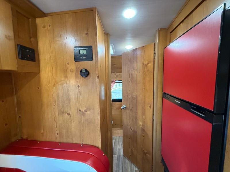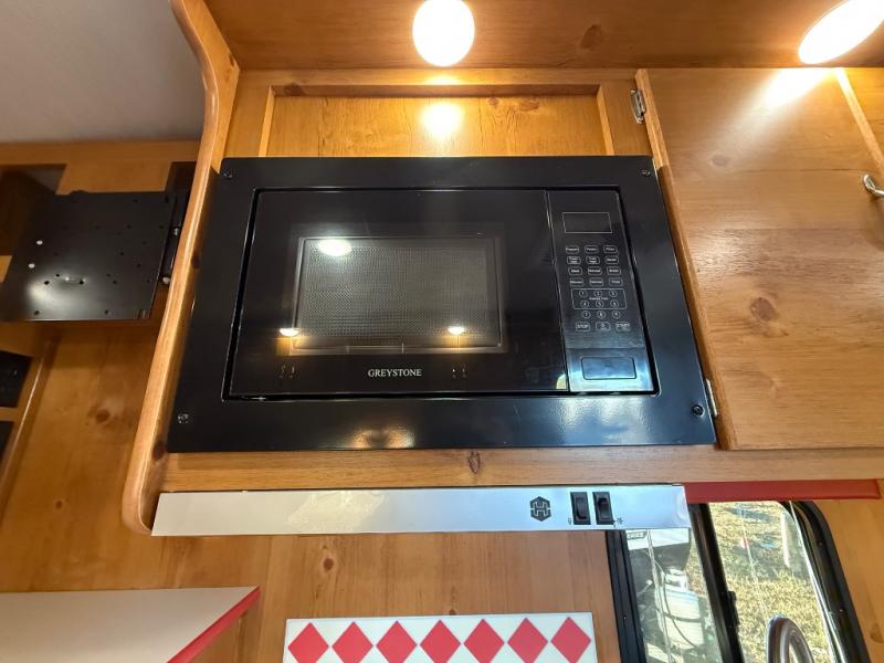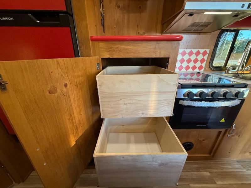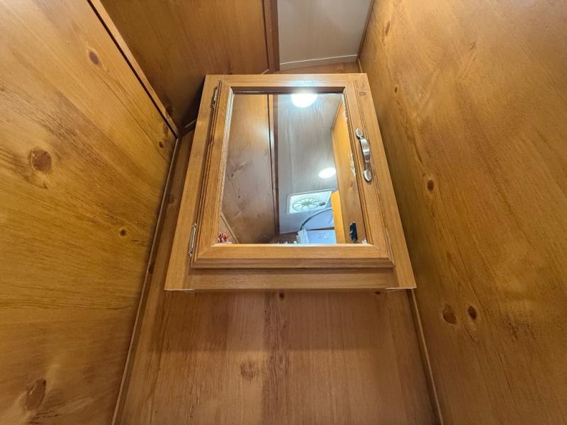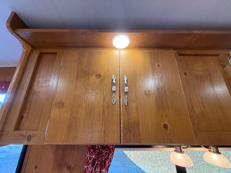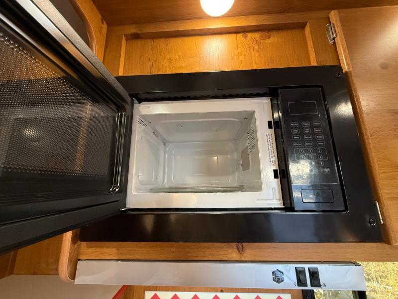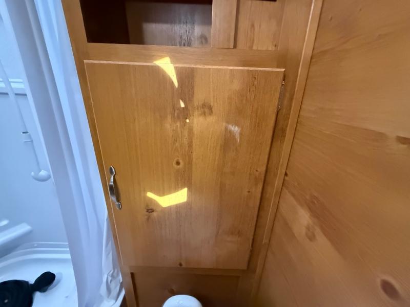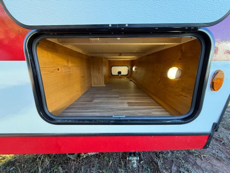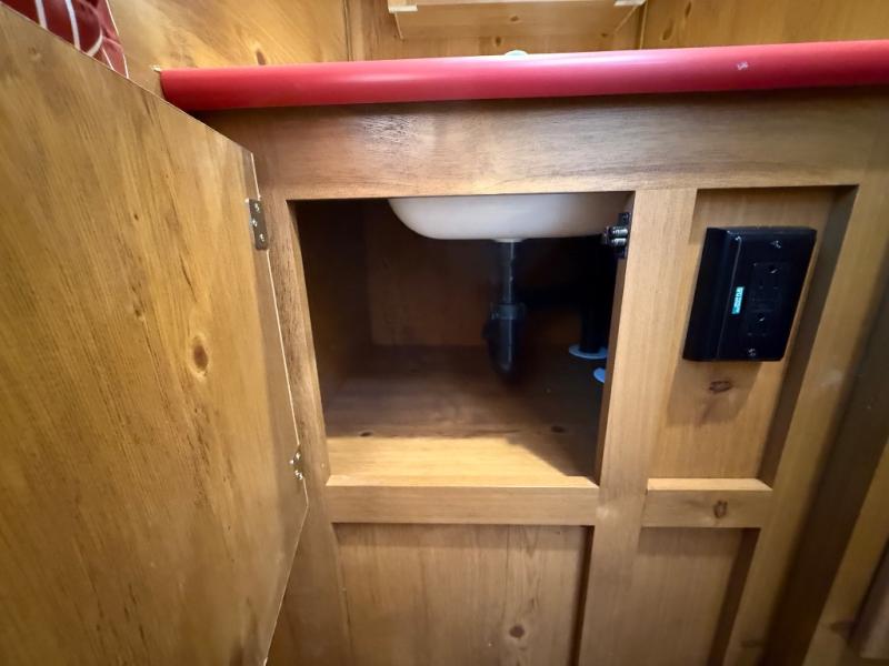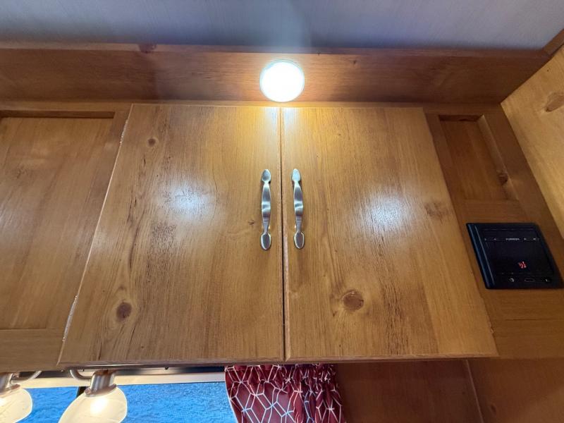 This travel trailer has the same layout as model 18MBS, but you'll enjoy a fixed RV queen bed up front instead of the Murphy bed. The full rear bath includes a linen closet and a wardrobe to keep your necessities organized, and you'll find additional storage throughout this model for your belongings. The vintage booth dinette will be the perfect place to dine at after dinner is made on the cooktop. There is also a microwave oven for quick meals and an 8 cu. ft. 12V refrigerator for cold drinks and perishables. And don't forget about the exterior pass-through storage for your larger camp gear!