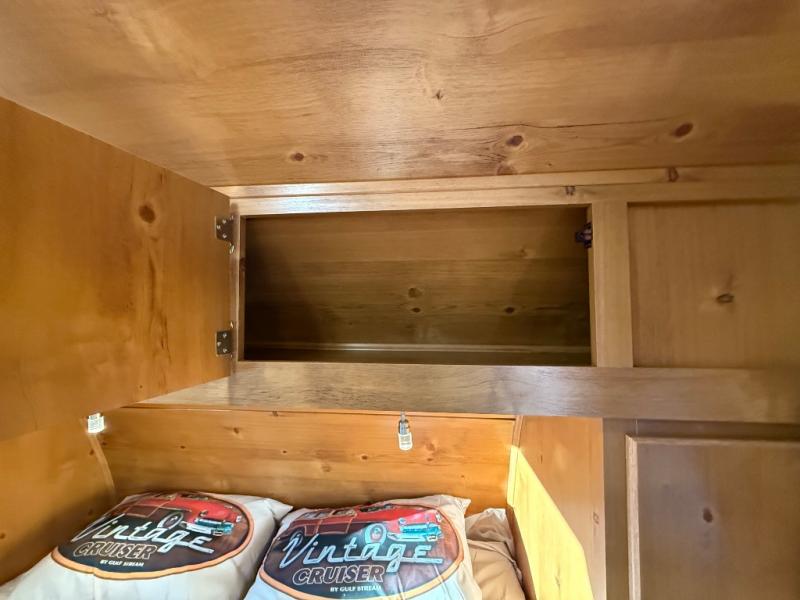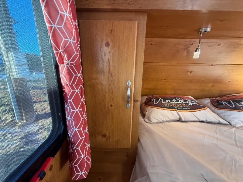 With any Vintage Cruiser by Gulf Stream you will be taken back to the fun of the 50's with vintage exterior graphics and classic interiors. Each model is constructed with a six-sided welded aluminum frame, vacuum bonded sidewalls with Azdel, and a vintage painted bumper you are sure to love. The Vintage Cruiser travel trailers include high-performance vinyl flooring, LED interior ceiling lights, a seamless tub/shower surround, and vintage flat cabinet doors to name a few comforts you'll find throughout. Some of the stand-out features found within the Vintage Package include a tankless water heater, a 100W roof-mounted solar panel with a controller, Goodyear Endurance tires, and more!