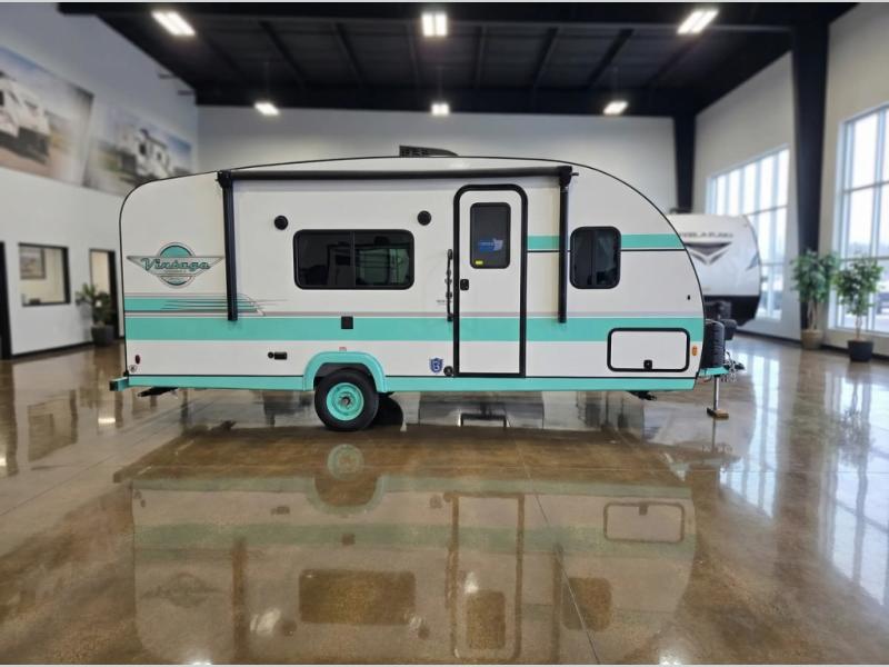 With any Vintage Cruiser by Gulf Stream you will be taken back to the fun of the 50's with vintage exterior graphics and classic interiors. Each model is constructed with a six-sided welded aluminum frame, vacuum bonded sidewalls with Azdel, and a vintage painted bumper you are sure to love. The Vintage Cruiser travel trailers include high-performance vinyl flooring, LED interior ceiling lights, a seamless tub/shower surround, and vintage flat cabinet doors to name a few comforts you'll find throughout. Some of the stand-out features found within the Vintage Package include a tankless water heater, a 100W roof-mounted solar panel with a controller, Goodyear Endurance tires, and more!