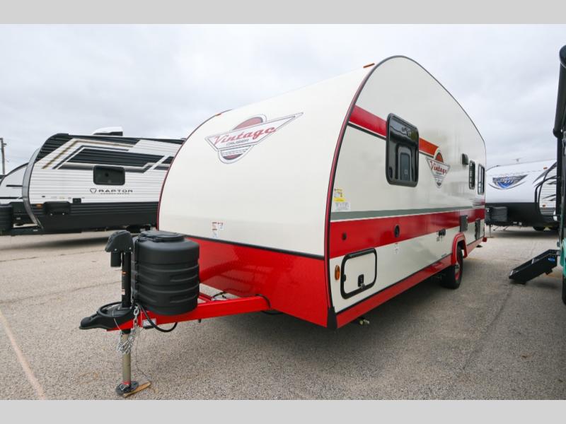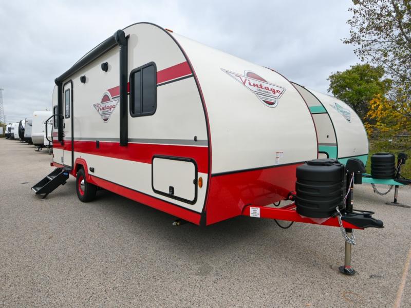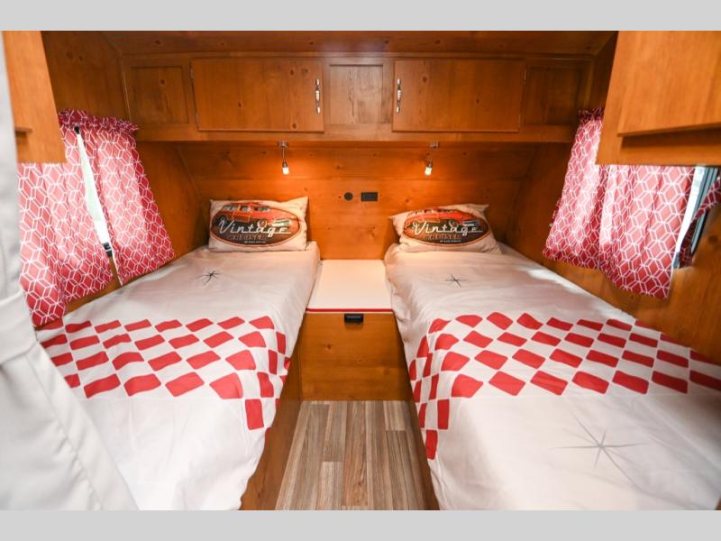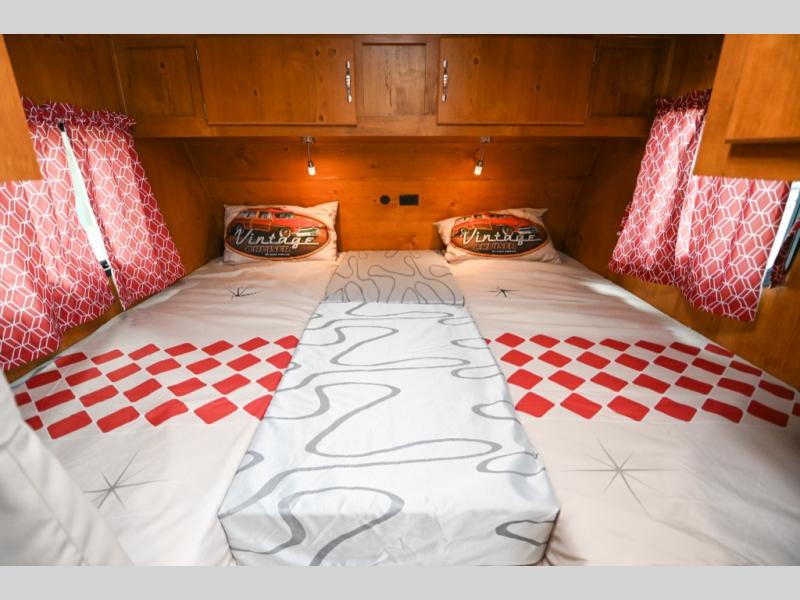 With any Vintage Cruiser by Gulf Stream you will be taken back to the fun of the 50's with vintage exterior graphics and classic interiors. Each model is constructed with a six-sided welded aluminum frame, vacuum bonded sidewalls with Azdel, and a vintage painted bumper you are sure to love. The Vintage Cruiser travel trailers include high-performance vinyl flooring, LED interior ceiling lights, a seamless tub/shower surround, and vintage flat cabinet doors to name a few comforts you'll find throughout. Some of the stand-out features found within the Vintage Package include a tankless water heater, a 100W roof-mounted solar panel with a controller, Goodyear Endurance tires, and more!