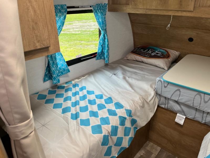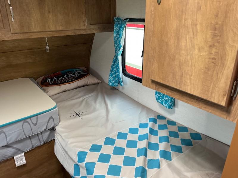 With any Vintage Cruiser by Gulf Stream you will be taken back to the fun of the 50's with vintage exterior graphics and classic interiors. Each model is constructed with a six-sided welded aluminum frame, vacuum bonded sidewalls with Azdel, and a vintage painted bumper you are sure to love. The Vintage Cruiser travel trailers include high-performance vinyl flooring, LED interior ceiling lights, a seamless tub/shower surround, and vintage flat cabinet doors to name a few comforts you'll find throughout. Some of the stand-out features found within the Vintage Package include a tankless water heater, a 100W roof-mounted solar panel with a controller, Goodyear Endurance tires, and more!