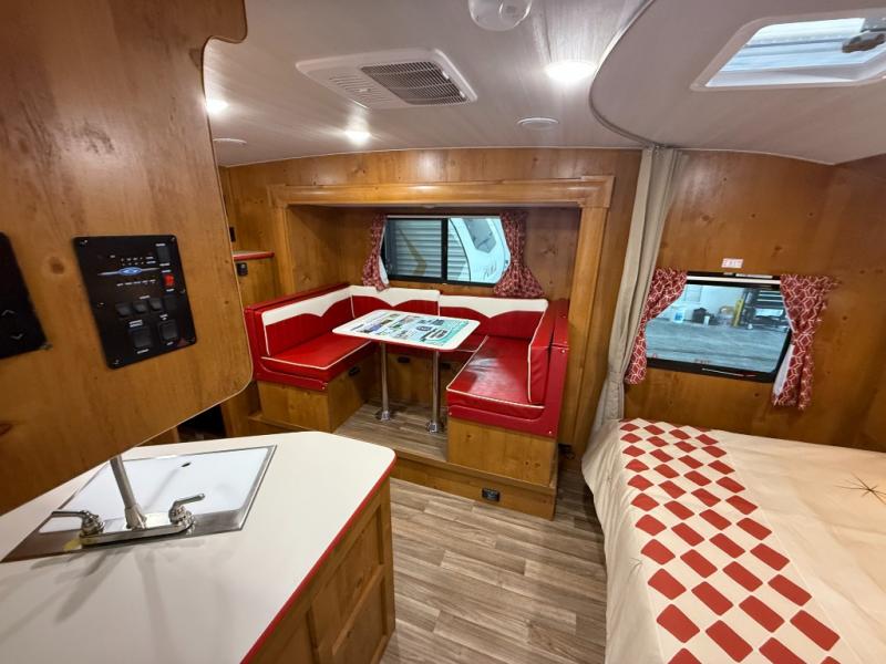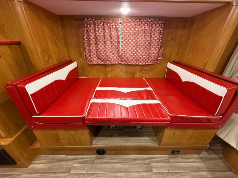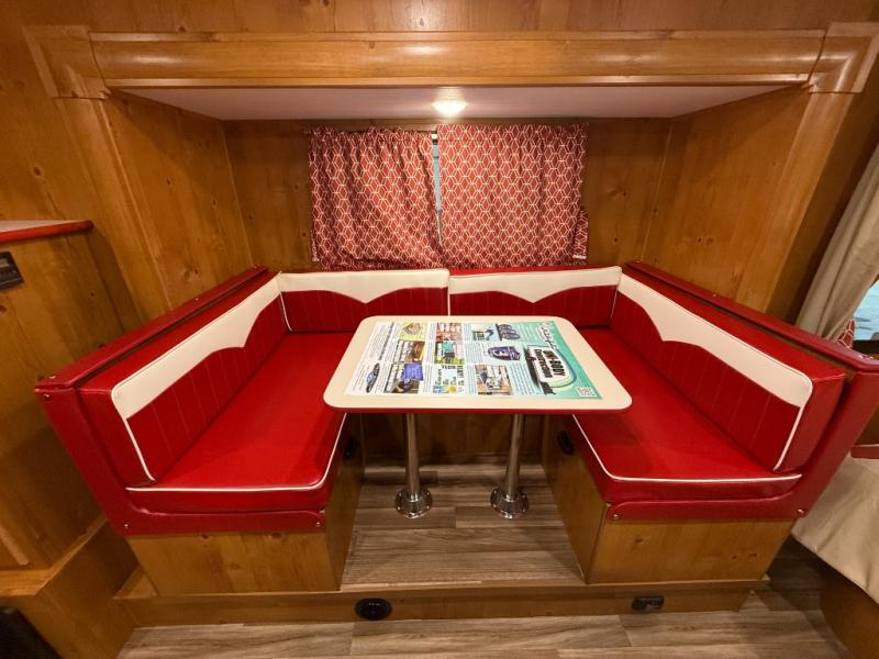 With any Vintage Cruiser by Gulf Stream you will be taken back to the fun of the 50's with vintage exterior graphics and classic interiors. Each model is constructed with a six-sided welded aluminum frame, vacuum bonded sidewalls with Azdel, and a vintage painted bumper you are sure to love. The Vintage Cruiser travel trailers include high-performance vinyl flooring, LED interior ceiling lights, a seamless tub/shower surround, and vintage flat cabinet doors to name a few comforts you'll find throughout. Some of the stand-out features found within the Vintage Package include a tankless water heater, a 100W roof-mounted solar panel with a controller, Goodyear Endurance tires, and more!