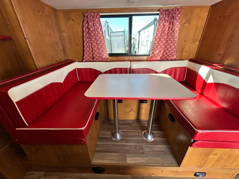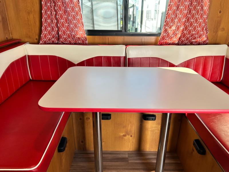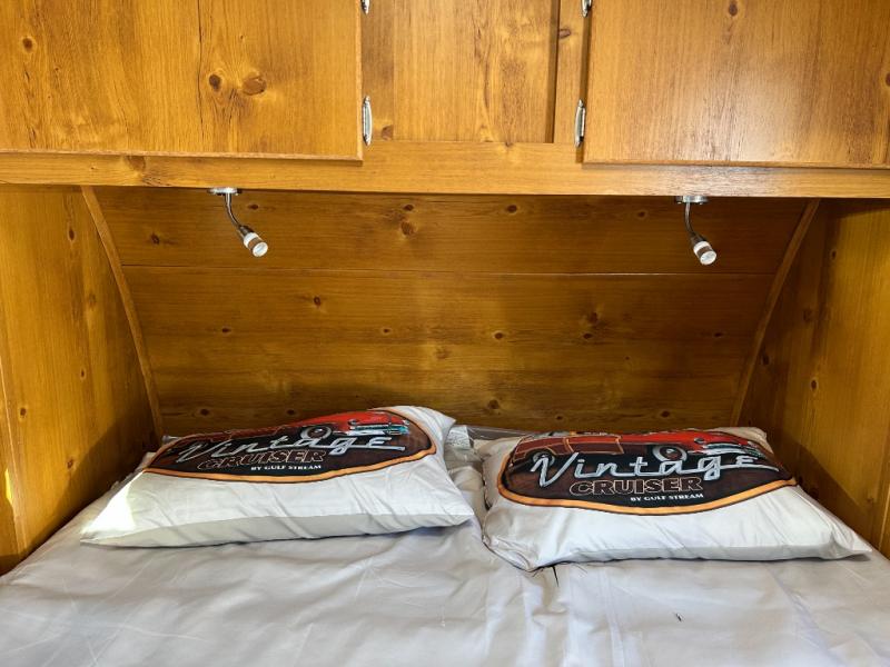 With any Vintage Cruiser by Gulf Stream you will be taken back to the fun of the 50's with vintage exterior graphics and classic interiors. Each model is constructed with a six-sided welded aluminum frame, vacuum bonded sidewalls with Azdel, and a vintage painted bumper you are sure to love. The Vintage Cruiser travel trailers include high-performance vinyl flooring, LED interior ceiling lights, a seamless tub/shower surround, and vintage flat cabinet doors to name a few comforts you'll find throughout. Some of the stand-out features found within the Vintage Package include a tankless water heater, a 100W roof-mounted solar panel with a controller, Goodyear Endurance tires, and more!