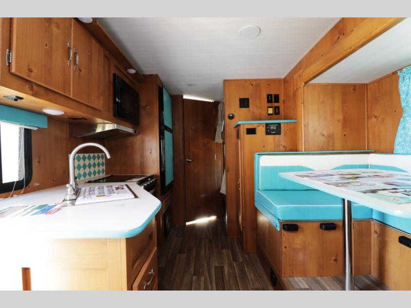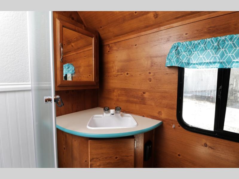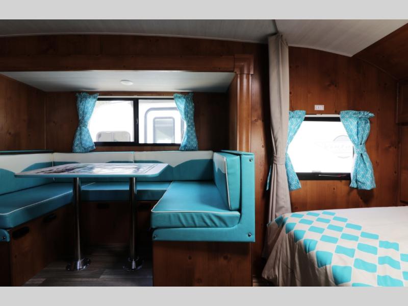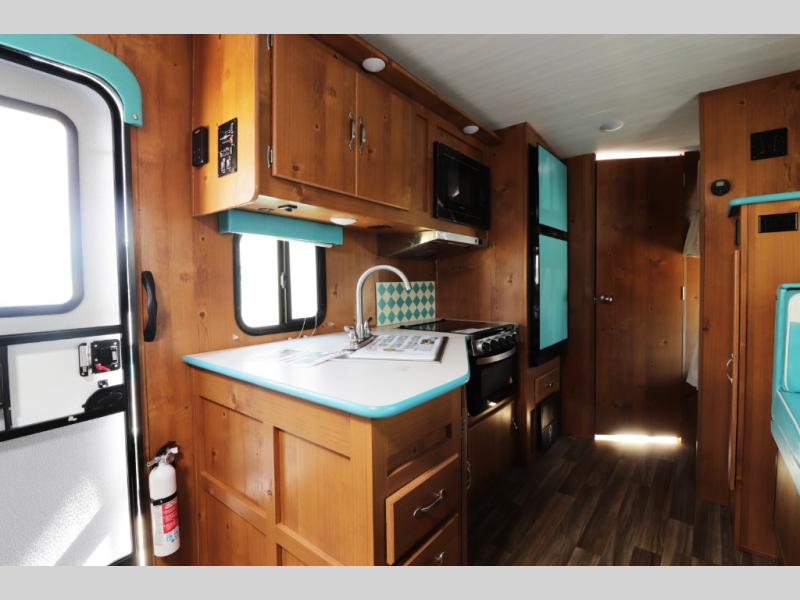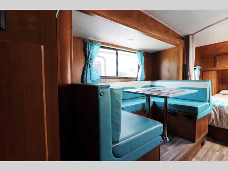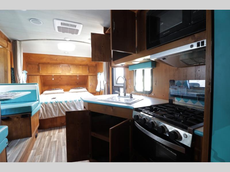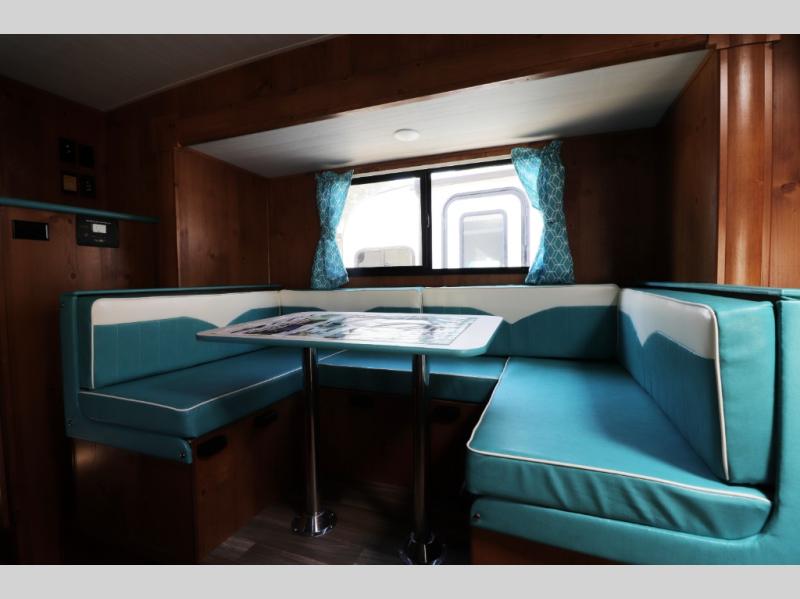 Highlights and popular manufacturer features buyers love include lightweight, easy-tow design for SUVs and half-ton trucks, durable laminated construction with aluminum framing, classic smooth fiberglass exterior with signature Vintage Cruiser retro styling, spacious rear bathroom with large shower and storage, comfortable front queen bed with dual wardrobes, convertible dinette for extra sleeping space, fully equipped kitchen with microwave, cooktop, oven, refrigerator, and stainless sink, high-efficiency roof A/C and furnace for all-season comfort, power awning with LED lighting for outdoor living, exterior pass-through storage, radial tires, and stabilizer jacks for smooth setup at any campsite.