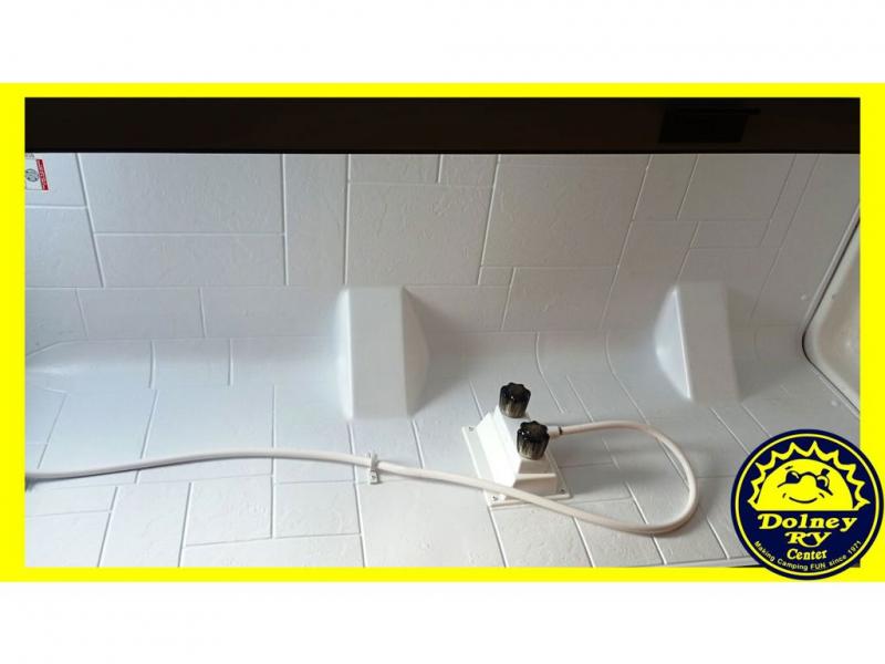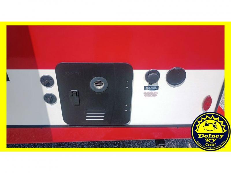 Step into comfort with this classic travel trailer in tow. You will find a rear vintage booth dinette and a sofa slide out with end tables to set your drinks on. The kitchen is complete with a microwave oven, cooktop, plus overhead cabinets for your belongings. After a day outdoors, you can clean up in the 24" x 36" shower, and there is a private toilet and sink across the hall if someone needs to use it while you're cleaning up. This model will feel just like home with its RV queen bed and dual shirt closets for your clothes.