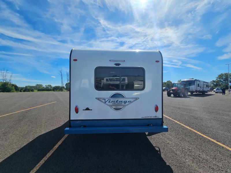 With any Vintage Cruiser by Gulf Stream you will be taken back to the fun of the 50's with vintage exterior graphics and classic interiors. Each model is constructed with a six-sided welded aluminum frame, vacuum bonded sidewalls with Azdel, and a vintage painted bumper you are sure to love. The Vintage Cruiser travel trailers include high-performance vinyl flooring, LED interior ceiling lights, a seamless tub/shower surround, and vintage flat cabinet doors to name a few comforts you'll find throughout. Some of the stand-out features found within the Vintage Package include a tankless water heater, a 100W roof-mounted solar panel with a controller, Goodyear Endurance tires, and more!