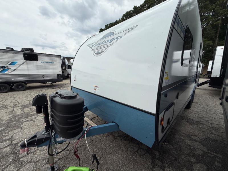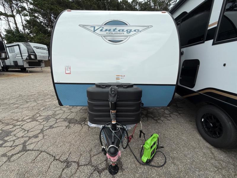 With any Vintage Cruiser by Gulf Stream you will be taken back to the fun of the 50's with vintage exterior graphics and classic interiors. Each model is constructed with a six-sided welded aluminum frame, vacuum bonded sidewalls with Azdel, and a vintage painted bumper you are sure to love. The Vintage Cruiser travel trailers include high-performance vinyl flooring, LED interior ceiling lights, a seamless tub/shower surround, and vintage flat cabinet doors to name a few comforts you'll find throughout. Some of the stand-out features found within the Vintage Package include a tankless water heater, a 100W roof-mounted solar panel with a controller, Goodyear Endurance tires, and more!