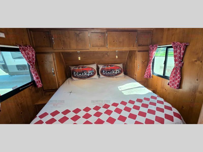 With any Vintage Cruiser by Gulf Stream you will be taken back to the fun of the 50's with vintage exterior graphics and classic interiors. Each model is constructed with a six-sided welded aluminum frame, vacuum bonded sidewalls with Azdel, and a vintage painted bumper you are sure to love. The Vintage Cruiser travel trailers include high-performance vinyl flooring, LED interior ceiling lights, a seamless tub/shower surround, and vintage flat cabinet doors to name a few comforts you'll find throughout. Some of the stand-out features found within the Vintage Package include a tankless water heater, a 100W roof-mounted solar panel with a controller, Goodyear Endurance tires, and more!
