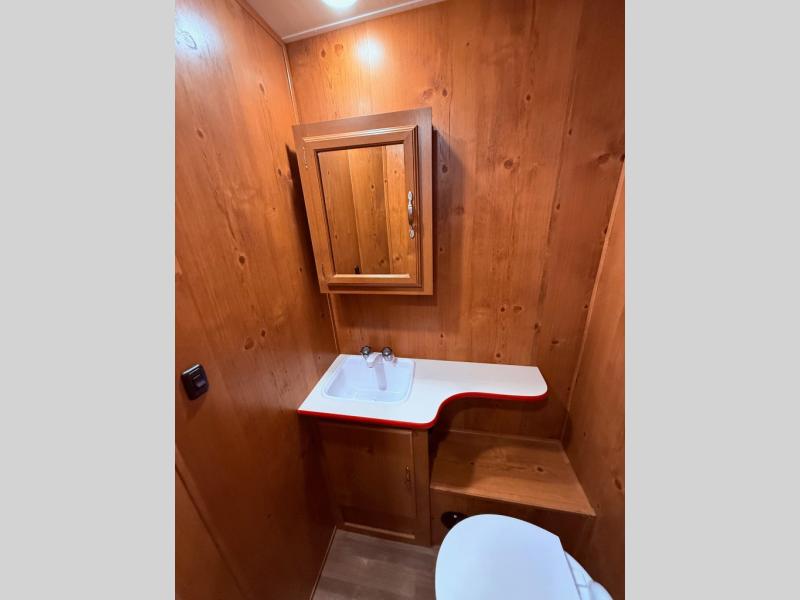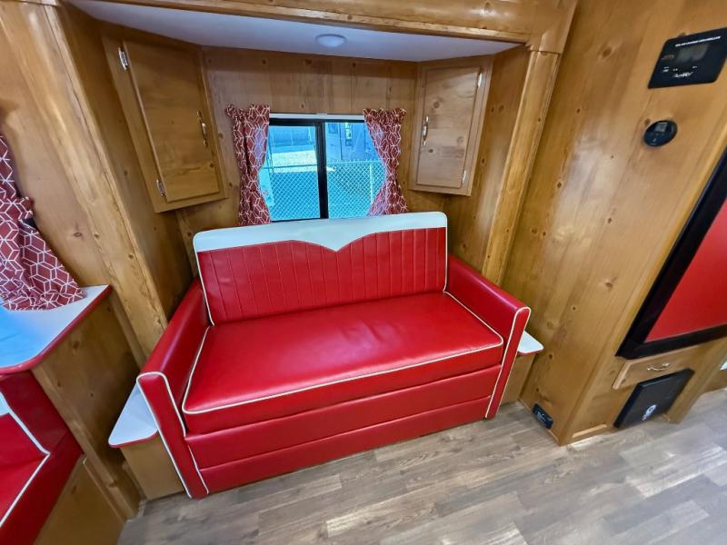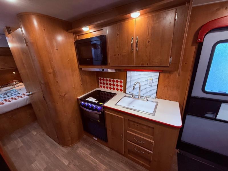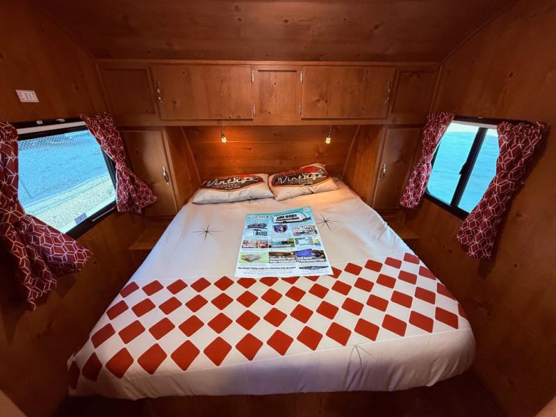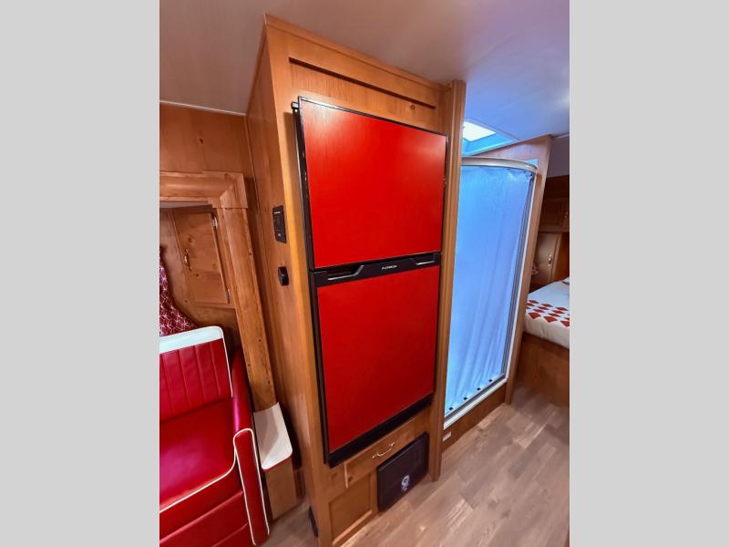 What I liked most: I like the vintage style, the red vinyl, and the knotty pine interior. I chose this model because of access to the bed on both sides, the dinette surrounded by windows, and a deep shower pan that won't leak on the floor when you bump the curtain. I also like that the toilet is not in the shower. My husband wanted 2 axels. We have the trailer 2 months and have camped 4 times. We're on a huge learning curve, but everything has worked perfectly. Our dealer, Big Country RV, Redmond, Oregon, checked everything out and gave us a walk through that was very helpful.