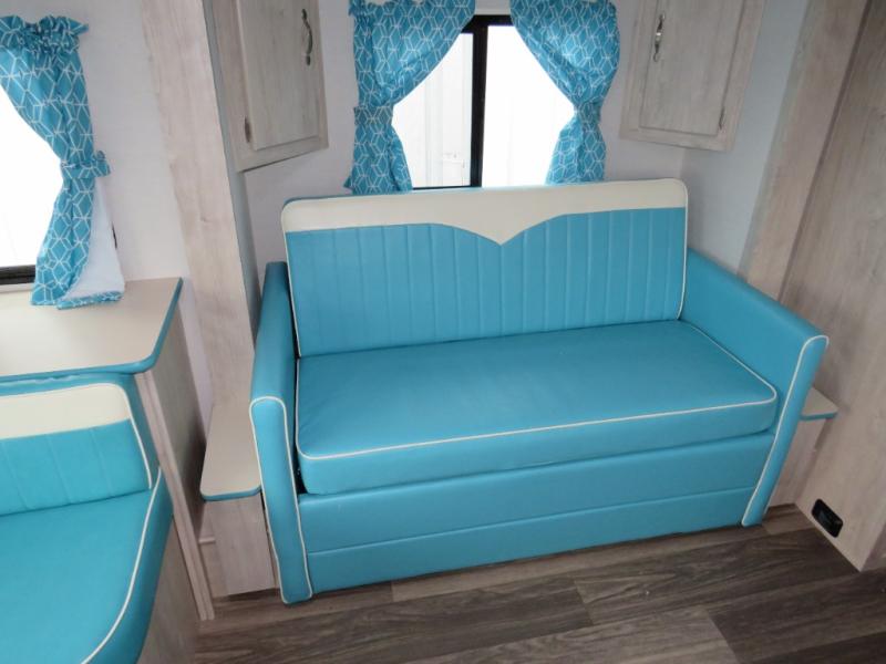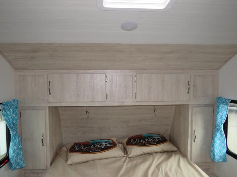 With any Vintage Cruiser by Gulf Stream you will be taken back to the fun of the 50's with vintage exterior graphics and classic interiors. Each model is constructed with a six-sided welded aluminum frame, vacuum bonded sidewalls with Azdel, and a vintage painted bumper you are sure to love. The Vintage Cruiser travel trailers include high-performance vinyl flooring, LED interior ceiling lights, a seamless tub/shower surround, and vintage flat cabinet doors to name a few comforts you'll find throughout. Some of the stand-out features found within the Vintage Package include a tankless water heater, a 100W roof-mounted solar panel with a controller, Goodyear Endurance tires, and more!