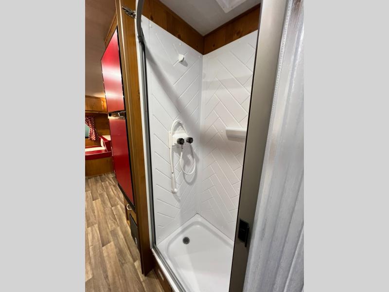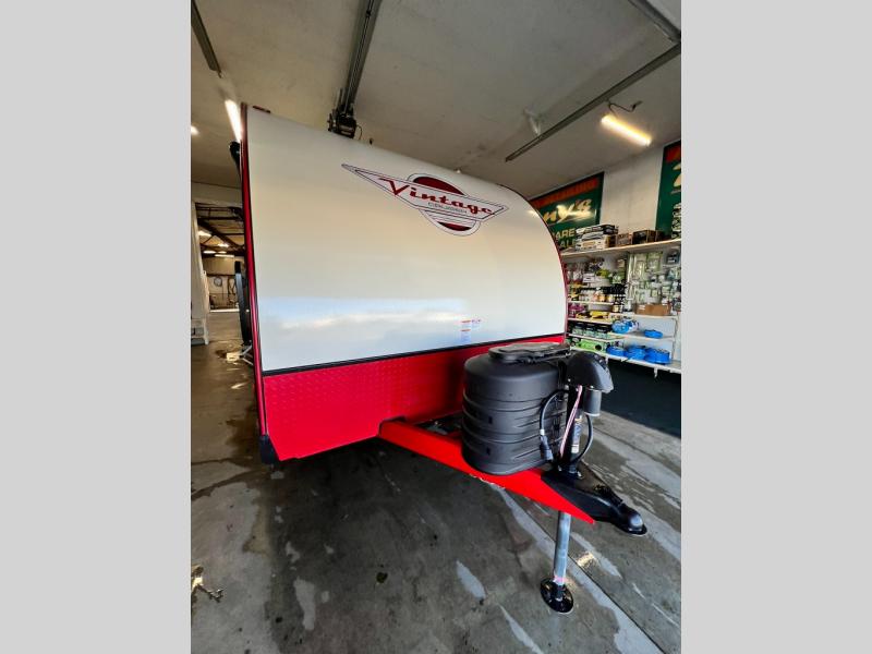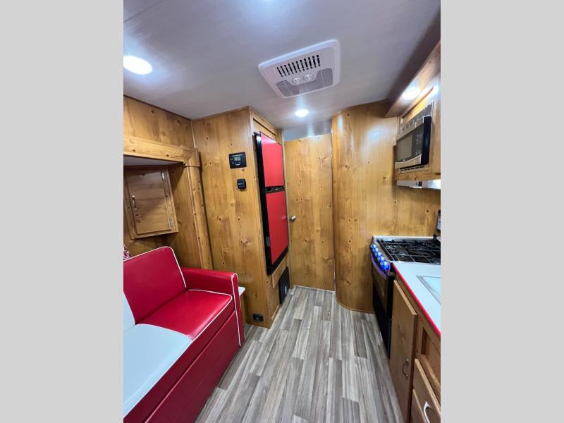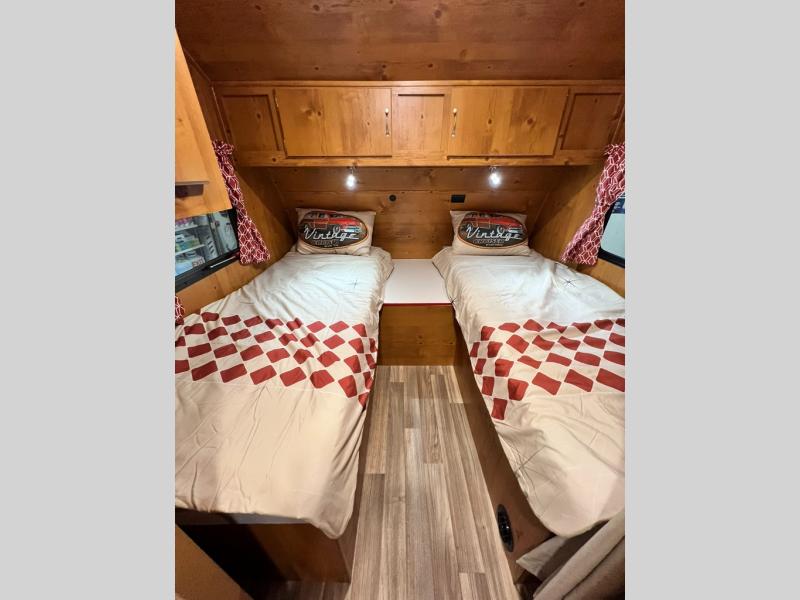 With any Vintage Cruiser by Gulf Stream you will be taken back to the fun of the 50's with vintage exterior graphics and classic interiors. Each model is constructed with a six-sided welded aluminum frame, vacuum bonded sidewalls with Azdel, and a vintage painted bumper you are sure to love. The Vintage Cruiser travel trailers include high-performance vinyl flooring, LED interior ceiling lights, a seamless tub/shower surround, and vintage flat cabinet doors to name a few comforts you'll find throughout. Some of the stand-out features found within the Vintage Package include a tankless water heater, a 100W roof-mounted solar panel with a controller, Goodyear Endurance tires, and more!