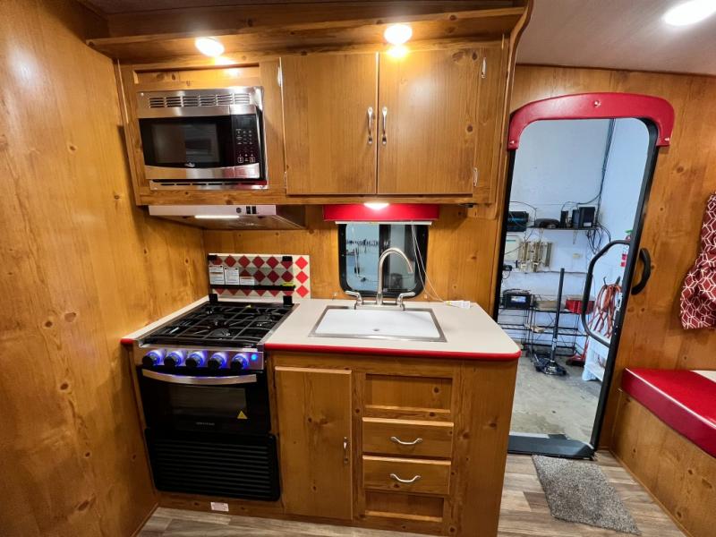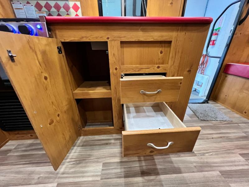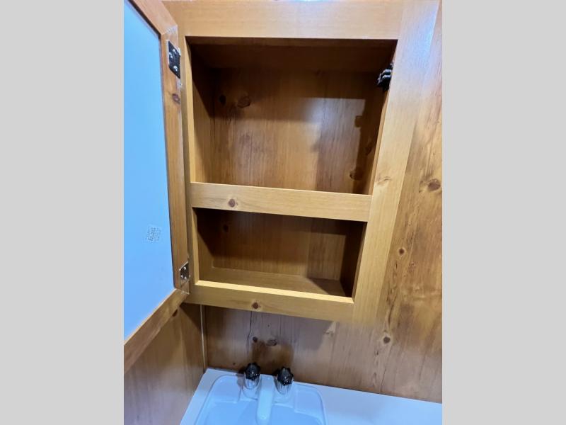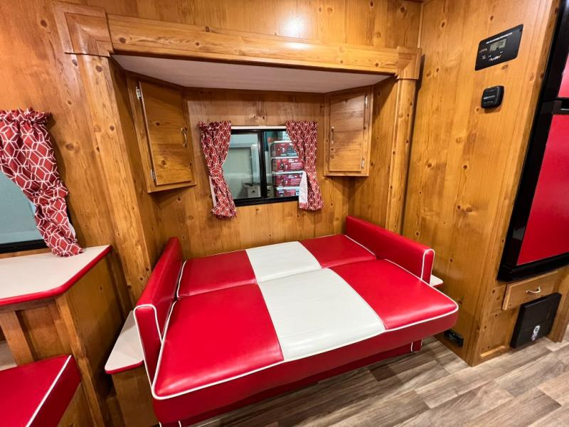 Step into comfort with this classic travel trailer in tow. You will find a rear vintage booth dinette and a sofa slide out with end tables to set your drinks on. The kitchen is complete with a microwave oven, cooktop, plus overhead cabinets for your belongings. After a day outdoors, you can clean up in the 24" x 36" shower, and there is a private toilet and sink across the hall if someone needs to use it while you're cleaning up. In the front bedroom you'll find twin beds with an insert to convert them into a king-size bed, plus dual shirt closets. How convenient!