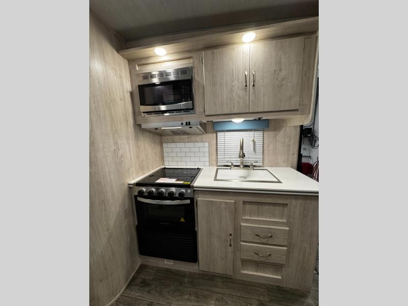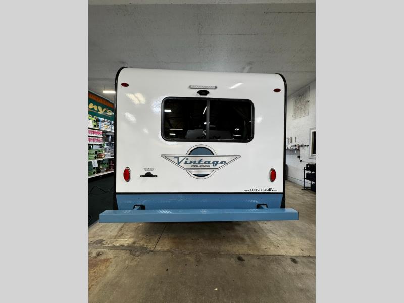 With any Vintage Cruiser by Gulf Stream you will be taken back to the fun of the 50's with vintage exterior graphics and classic interiors. Each model is constructed with a six-sided welded aluminum frame, vacuum bonded sidewalls with Azdel, and a vintage painted bumper you are sure to love. The Vintage Cruiser travel trailers include high-performance vinyl flooring, LED interior ceiling lights, a seamless tub/shower surround, and vintage flat cabinet doors to name a few comforts you'll find throughout. Some of the stand-out features found within the Vintage Package include a tankless water heater, a 100W roof-mounted solar panel with a controller, Goodyear Endurance tires, and more!