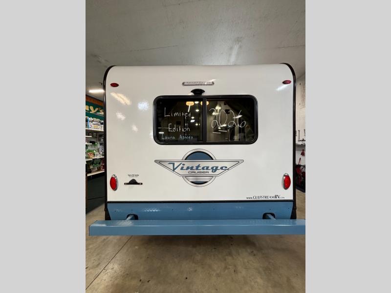 With any Vintage Cruiser by Gulf Stream you will be taken back to the fun of the 50's with vintage exterior graphics and classic interiors. Each model is constructed with a six-sided welded aluminum frame, vacuum bonded sidewalls with Azdel, and a vintage painted bumper you are sure to love. The Vintage Cruiser travel trailers include high-performance vinyl flooring, LED interior ceiling lights, a seamless tub/shower surround, and vintage flat cabinet doors to name a few comforts you'll find throughout. Some of the stand-out features found within the Vintage Package include a tankless water heater, a 100W roof-mounted solar panel with a controller, Goodyear Endurance tires, and more!