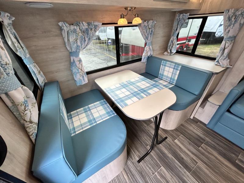 With any Vintage Cruiser by Gulf Stream you will be taken back to the fun of the 50's with vintage exterior graphics and classic interiors. Each model is constructed with a six-sided welded aluminum frame, vacuum bonded sidewalls with Azdel, and a vintage painted bumper you are sure to love. The Vintage Cruiser travel trailers include high-performance vinyl flooring, LED interior ceiling lights, a seamless tub/shower surround, and vintage flat cabinet doors to name a few comforts you'll find throughout. Some of the stand-out features found within the Vintage Package include a tankless water heater, a 100W roof-mounted solar panel with a controller, Goodyear Endurance tires, and more!