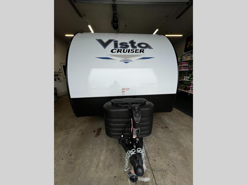 With any Vista Cruiser by Gulf Stream, you will enjoy premium quality in a compact and easy to tow travel trailer. The one-piece fiberglass roof, welded aluminum frame, and vacuum-bonded sidewalls with a composite barrier layer will create a strong and durable foundation to your RV. There are also LED running lights, along with an outside spray port, an electric awning, and a power tongue jack for easy set up. A home theater stereo with Bluetooth and speakers will allow you to listen to your favorite tunes, and there are interior and exterior TV mounting brackets if you decide to bring along a television. More interior features include "Opulence River Rock" wall vinyl, designer window treatments and night shades, tile backsplash at the range, and a premium foam mattress for your comfort.