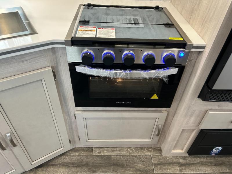 With any Vista Cruiser by Gulf Stream, you will enjoy premium quality in a compact and easy to tow travel trailer. The one-piece fiberglass roof, welded aluminum frame, and vacuum-bonded sidewalls with a composite barrier layer will create a strong and durable foundation to your RV. There are also LED running lights, along with an outside spray port, an electric awning, and a power tongue jack for easy set up. A home theater stereo with Bluetooth and speakers will allow you to listen to your favorite tunes, and there are interior and exterior TV mounting brackets if you decide to bring along a television. More interior features include "Opulence River Rock" wall vinyl, designer window treatments and night shades, tile backsplash at the range, and a premium foam mattress for your comfort.