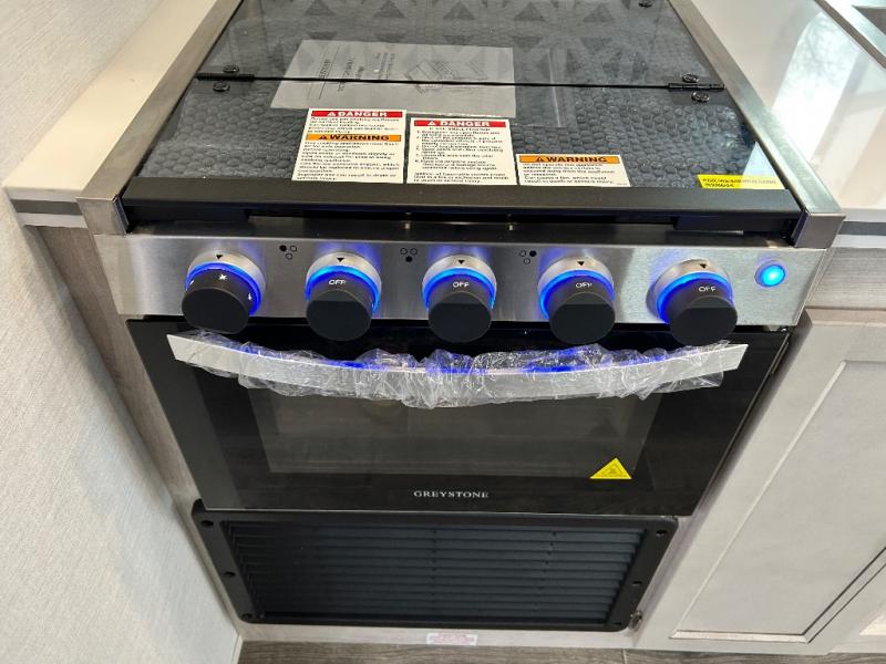 With any Vista Cruiser by Gulf Stream, you will enjoy premium quality in a compact and easy to tow travel trailer. The one-piece fiberglass roof, welded aluminum frame, and vacuum-bonded sidewalls with a composite barrier layer will create a strong and durable foundation to your RV. There are also LED running lights, along with an outside spray port, an electric awning, and a power tongue jack for easy set up. A home theater stereo with Bluetooth and speakers will allow you to listen to your favorite tunes, and there are interior and exterior TV mounting brackets if you decide to bring along a television. More interior features include "Opulence River Rock" wall vinyl, designer window treatments and night shades, tile backsplash at the range, and a premium foam mattress for your comfort.