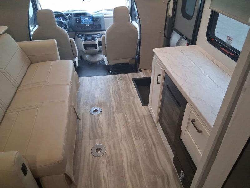 With any Yellowstone Cruiser Class C gas motorhome by Gulf Stream, you will enjoy comfort at every turn. There is a one-piece radius roof, a laminated steel-frame floor with an underbelly, and high-gloss Harbor Grey fiberglass walls with Azdel for added durability. You will stay powered up thanks to the 4.0 kW enclosed generator, plus there is a 25,000 BTU gas forced-air furnace and 13,500 BTU roof A/C to keep you comfortable. Each model includes vinyl flooring throughout, soft pleated privacy shades, designer window treatments, and a skydome skylight in the shower for more natural lighting and standing room!