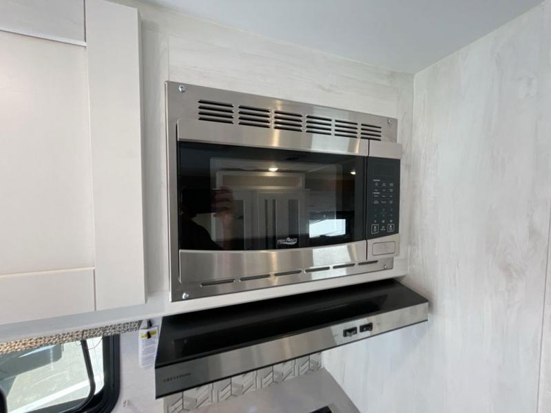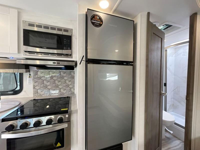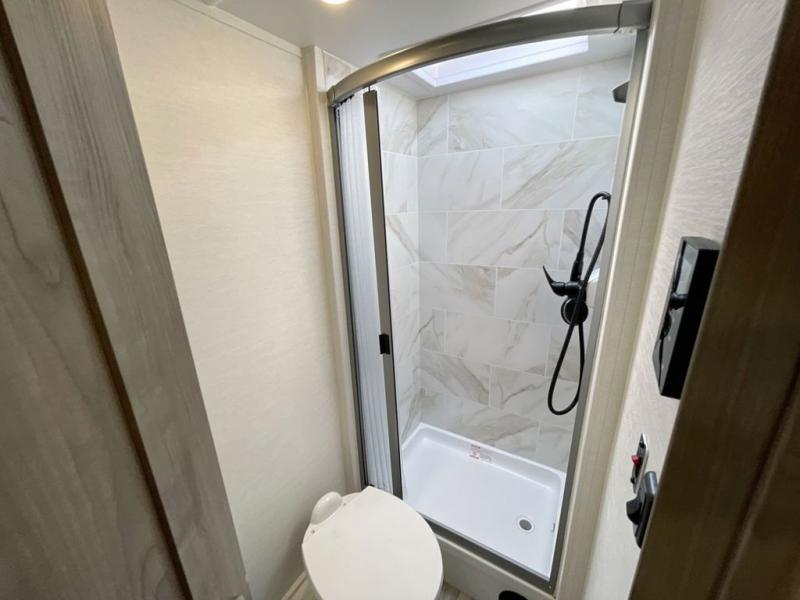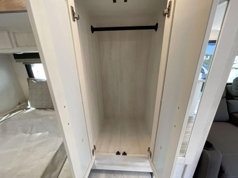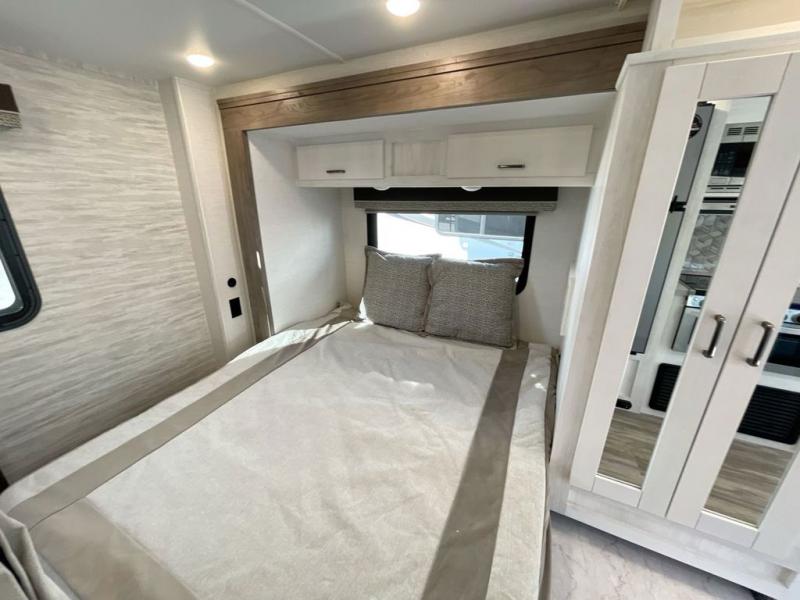 Get ready to see the summer sunshine, the fall colors, and/or the snow on the mountains when you travel in this easy to drive coach! The full-wall slide will impress you with all the floor space from front to back. You can sleep like royalty on the RV bed, store your clothes in the wardrobe and food in the pantry, and the booth dinette gives you a place to dine inside. The kitchen offers full amenities to make warm meals and keep leftovers cold in the refrigerator. You can stay clean with the full bathroom in the rear corner, and don't forget about the electric awning outside, giving you an outdoor living area.