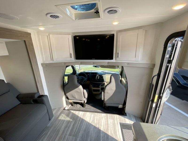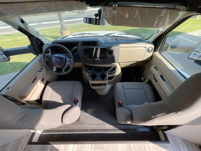 With any Yellowstone Cruiser Class C gas motorhome by Gulf Stream, you will enjoy comfort at every turn. There is a one-piece radius roof, a laminated steel-frame floor with an underbelly, and high-gloss Harbor Grey fiberglass walls with Azdel for added durability. You will stay powered up thanks to the 4.0 kW enclosed generator, plus there is a 25,000 BTU gas forced-air furnace and 13,500 BTU roof A/C to keep you comfortable. Each model includes vinyl flooring throughout, soft pleated privacy shades, designer window treatments, and a skydome skylight in the shower for more natural lighting and standing room!