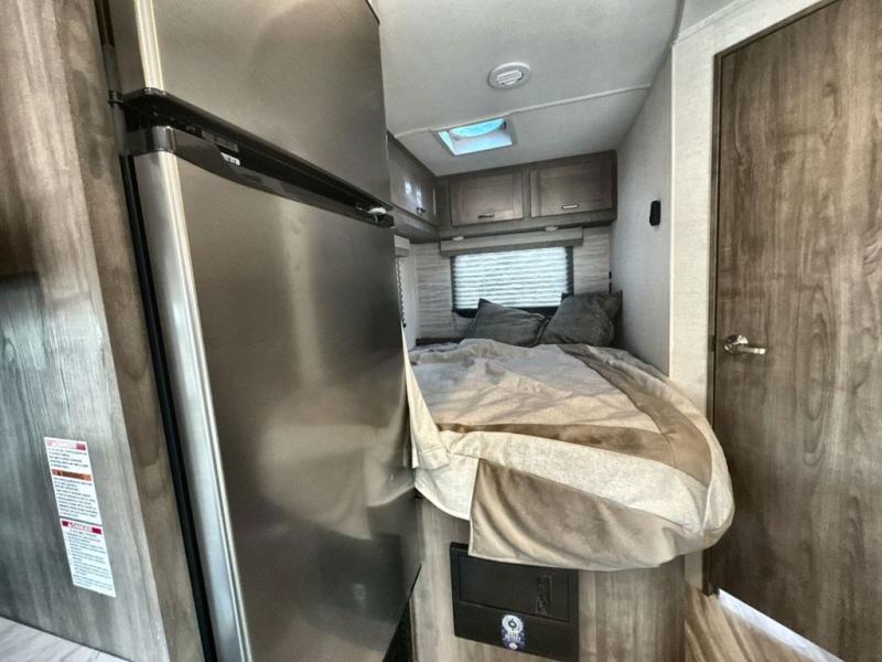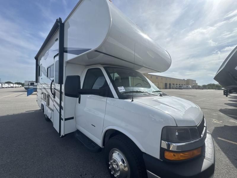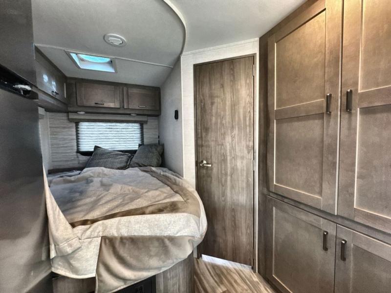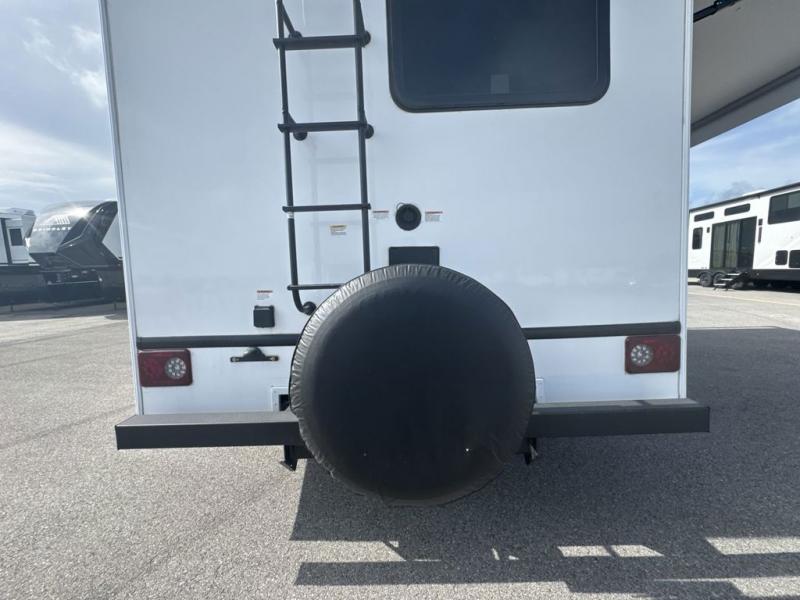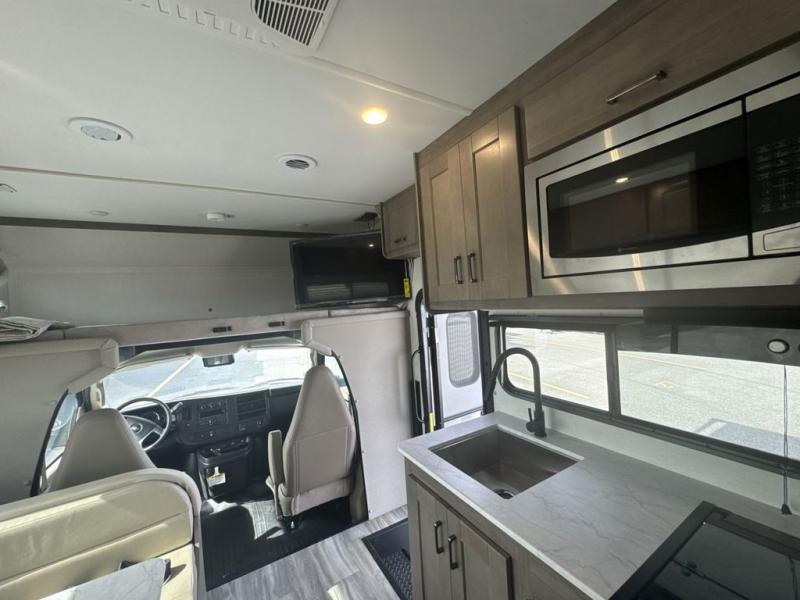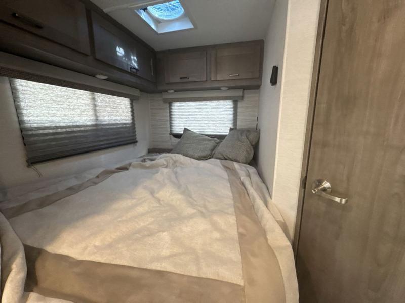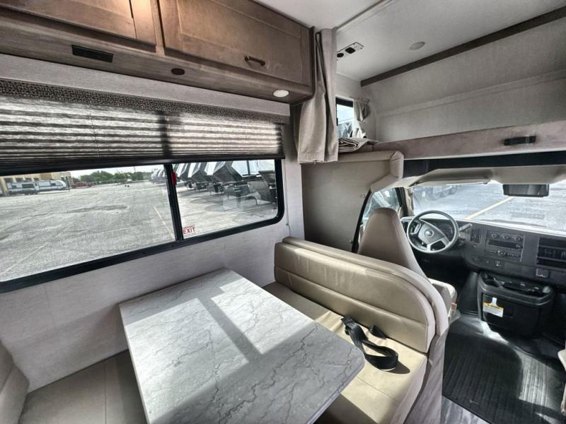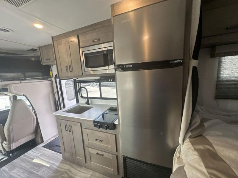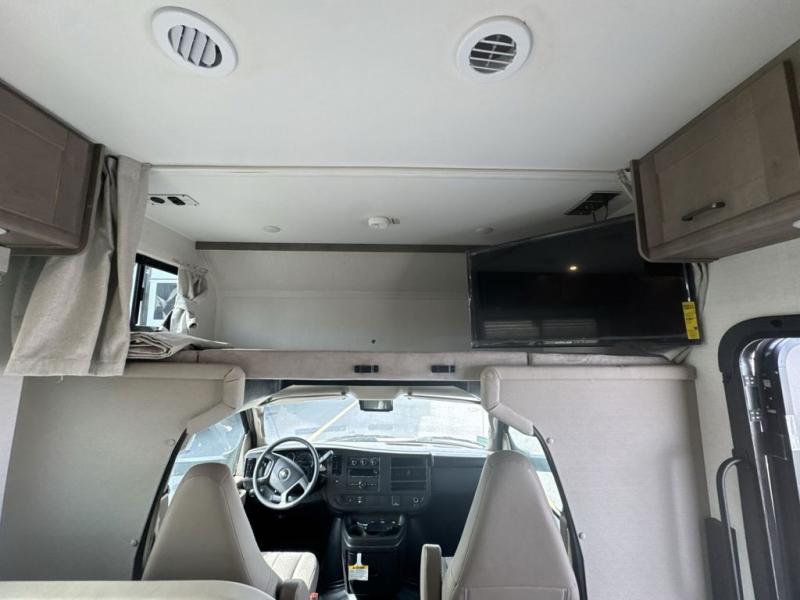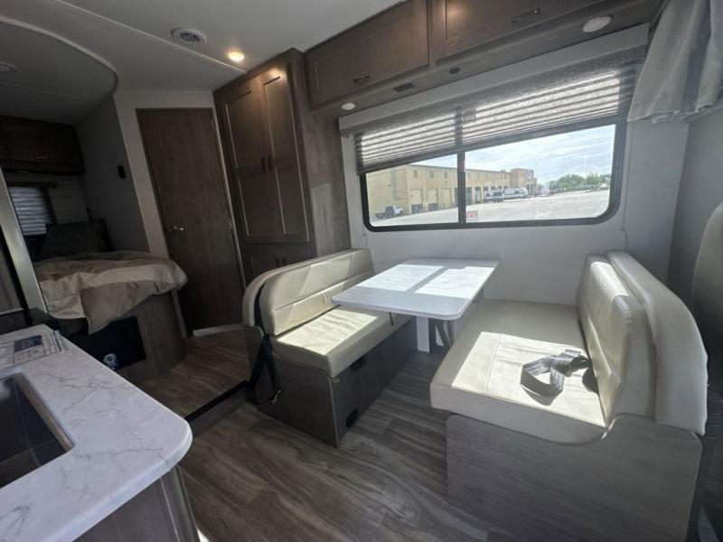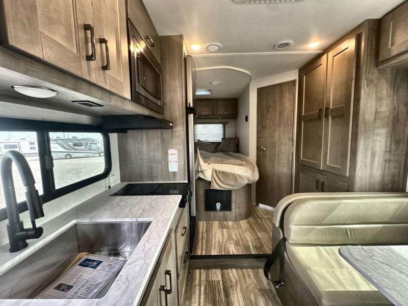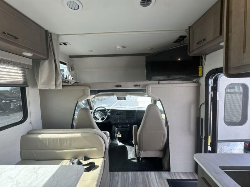 Enjoy a home on wheels with this motorhome! It features an overhead bunk with an insert and an optional TV with swing arm for extra entertainment. The booth dinette offers a comfortable place to enjoy your meals and play card games, as well as transform into an extra sleeping space. The other sleeping space is the corner 60" x 74" queen bed with basement storage underneath and overhead cabinets for your items. A rear corner bathroom lets you get squeaky clean each morning, and you can prepare your best meals with the three-burner cooktop and the 10-cu. ft. 12V double door refrigerator/freezer!