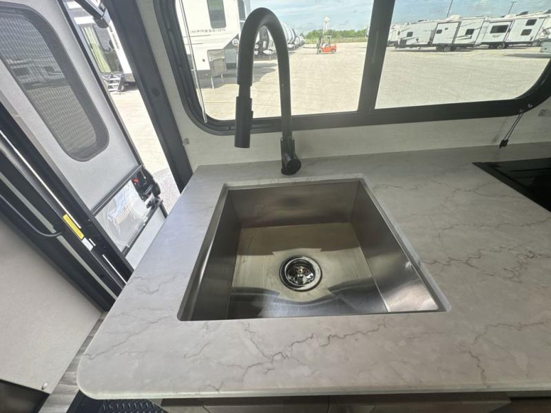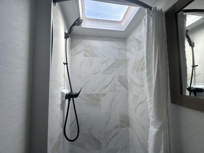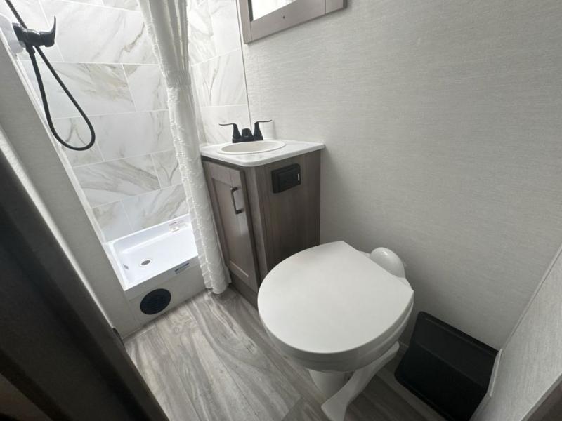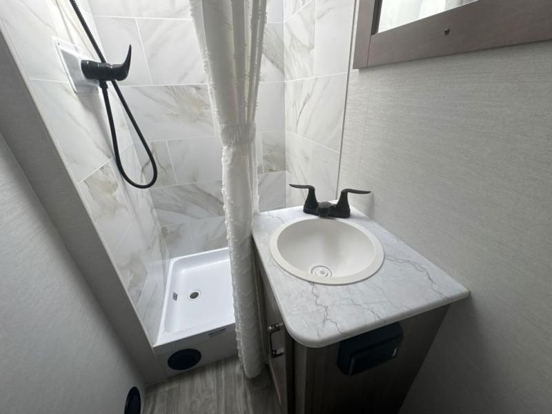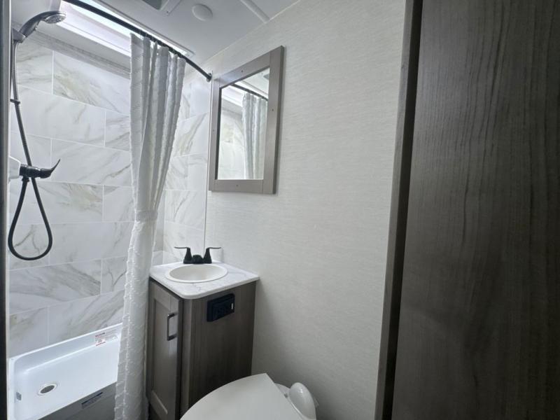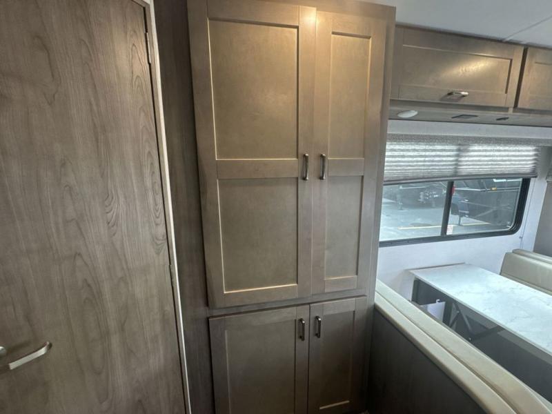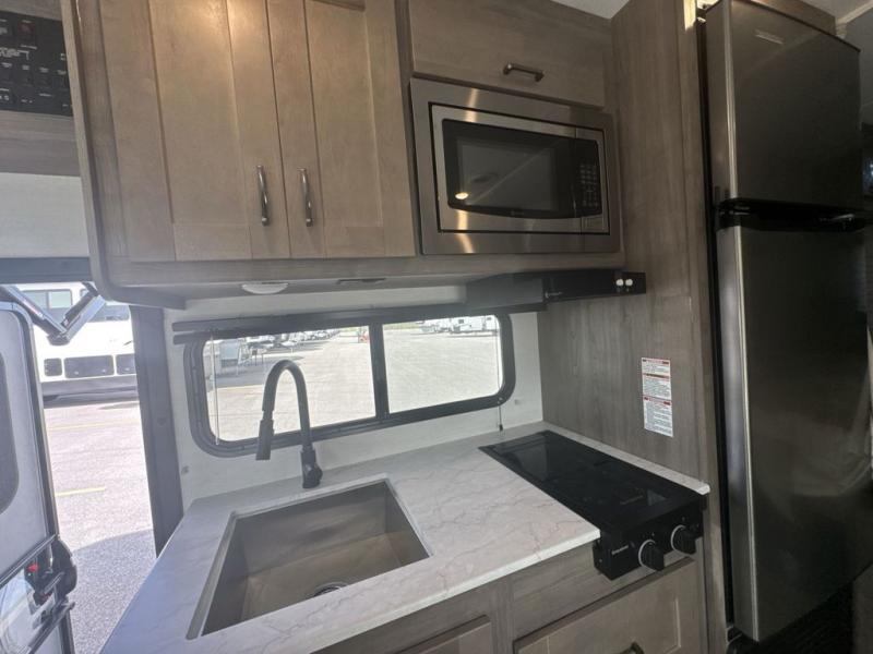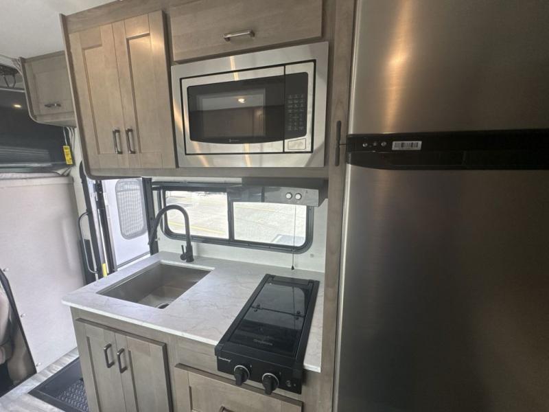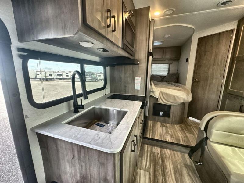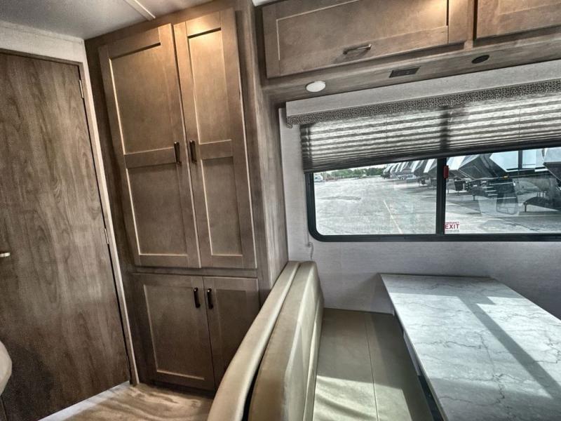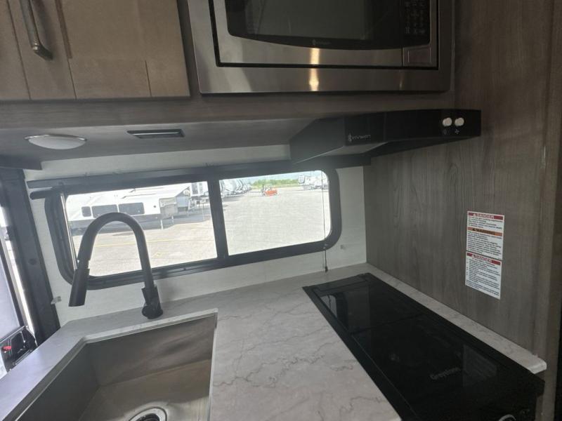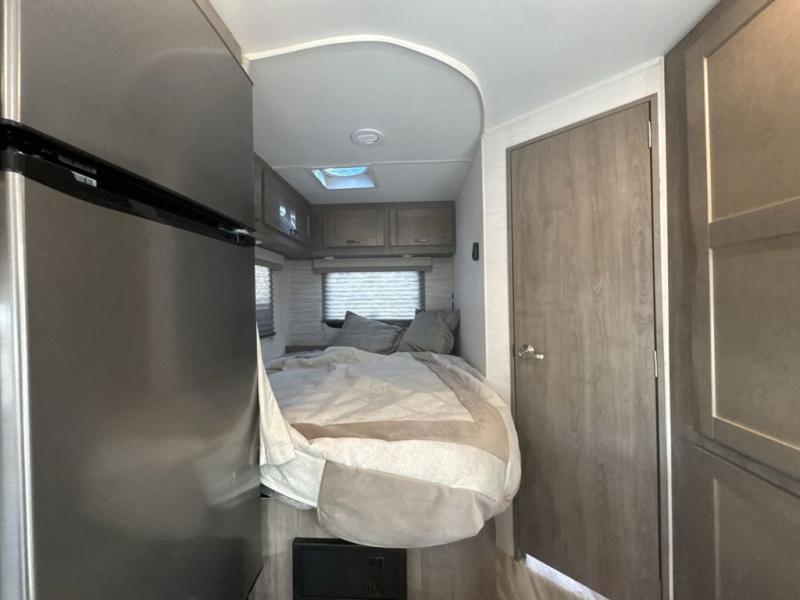 Enjoy a home on wheels with this motorhome! It features an overhead bunk with an insert and an optional TV with swing arm for extra entertainment. The booth dinette offers a comfortable place to enjoy your meals and play card games, as well as transform into an extra sleeping space. The other sleeping space is the corner 60" x 74" queen bed with basement storage underneath and overhead cabinets for your items. A rear corner bathroom lets you get squeaky clean each morning, and you can prepare your best meals with the three-burner cooktop and the 10-cu. ft. 12V double door refrigerator/freezer!